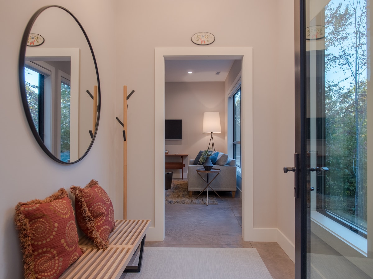 Private Studiowohnung in einer ruhigen Waldlandschaft, nur 14 Minuten von der Innenstadt von Asheville, 25 Minuten von Hatley Pointe und ¼ Meile von der N Main St. in Weaverville entfernt. Die Gästesuite verbindet perfekt ruhige, waldige Abgeschiedenheit mit einfachem Zugang zu den besten Sehenswürdigkeiten von West-Nord-Carolina. Genieße einen eigenen Arbeitsplatz und nahe gelegene Cafés – ideal für Remote-Arbeit oder Geschäftsreisen. Wir freuen uns über kurze oder längere Aufenthalte und sind hier, um deinen Besuch unvergesslich zu machen!