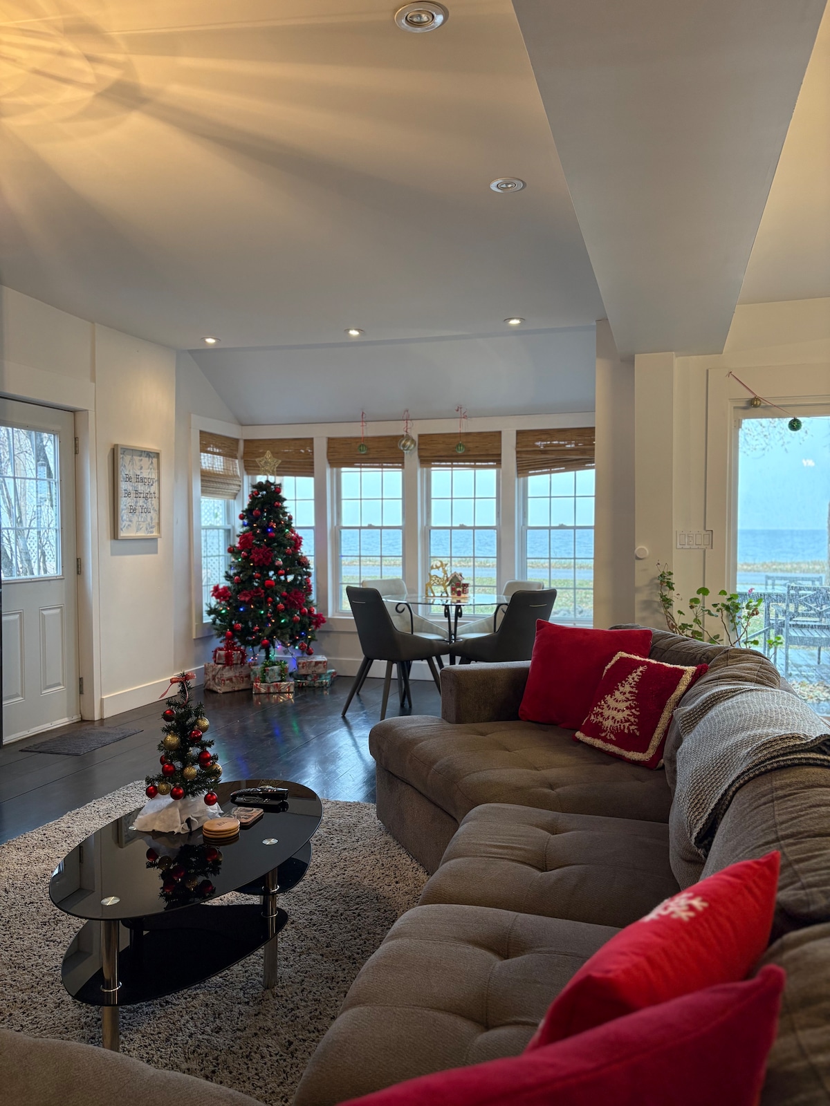 Wohnen am Strand vom Feinsten! Genieße direkten Strandzugang, einen bezaubernden Blick auf den See von der Terrasse aus, Grillfeste, lustige Spiele, einen Whirlpool und Entspannung rund um die Feuerstelle. Im Inneren findest du einen geschmackvoll eingerichteten Raum mit 4 Schlafzimmern für 10 Gäste, ein gemütliches Wohnzimmer mit einem großen Fernseher, darunter ein Schlafzimmer im Erdgeschoss mit eigenem Bad. Die obere Etage bietet drei zusätzliche Zimmer für ultimativen Komfort sowie eine voll ausgestattete Küche und einen Essbereich.