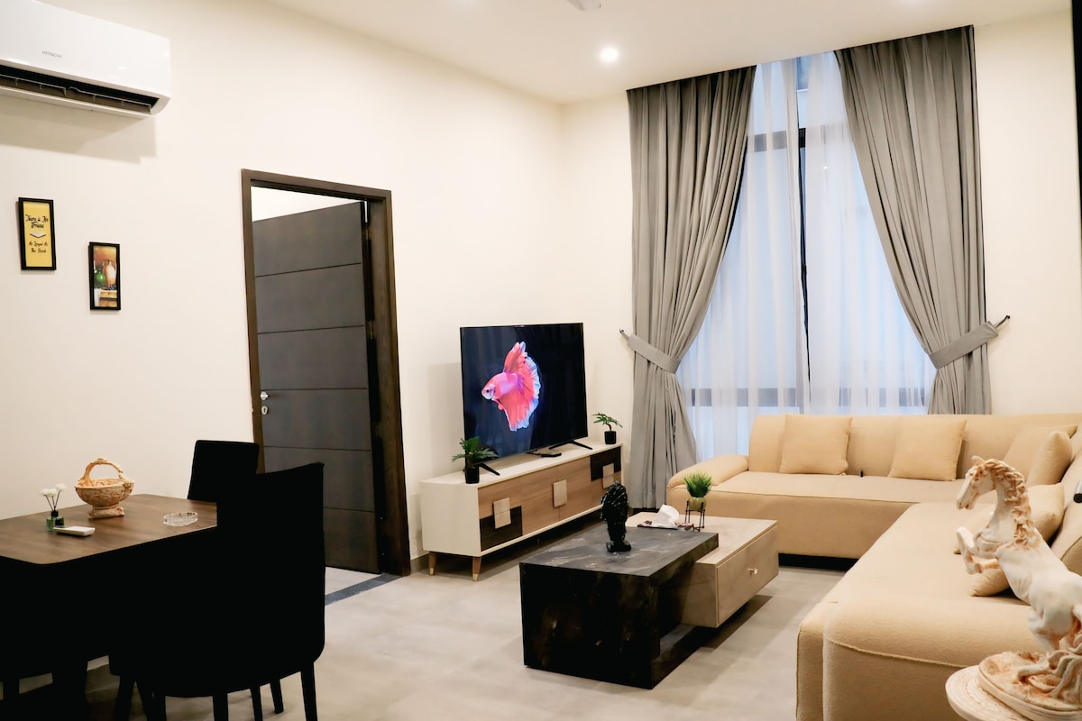 Geräumige 2-Zimmer-Wohnung in Ghori Town – ideal für Familien Genieße deinen Aufenthalt in dieser hellen und luftigen Wohnung. Die Wohnung bietet eine voll ausgestattete Küche, zwei komfortable Schlafzimmer, einen gemütlichen Wohnbereich, ein eigenes Badezimmer und Highspeed-WLAN. Egal, ob du beruflich oder privat in der Stadt bist, du wirst die moderne Einrichtung, den einfachen Zugang zu Geschäften, Restaurants und Hauptstraßen zu schätzen wissen.
