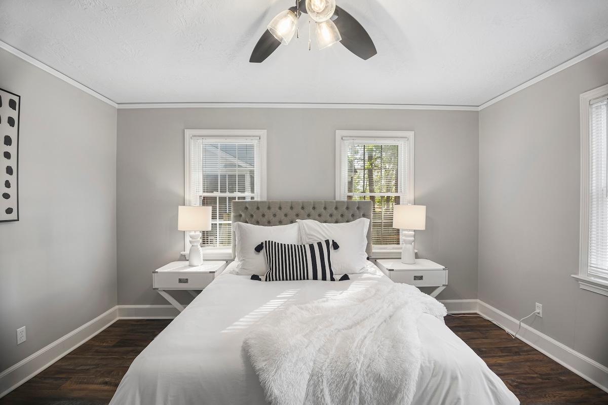 Genießen Sie den modernen/Vintage-Charme in diesem NEU renovierten 2-Zimmer-/1-Badezimmer-Cottage im Herzen von Augusta - nur 2,5 Meilen vom Augusta National entfernt. Neben der I-20, Washington Road und nur 8 km vom Doctor's Hospital entfernt, liegt diese stilvolle Oase zentral. TOLLE Restaurants & Bars sind in alle Richtungen. Neue Matratzen, Bettwäsche, Kissen, Handtücher, SS-Geräte, Flachbildfernseher, Kamin, wunderschöne Beleuchtung, Hartholzböden, Quarz-Arbeitsplatten und eine wunderschöne Terrasse auf der Rückseite sorgen dafür, dass Sie sich stilvoll entspannen können.