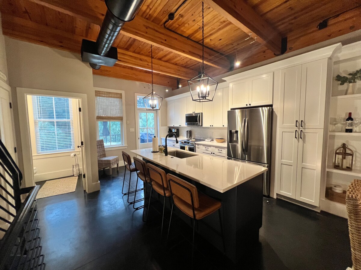 (Siehe auch „The Harrington“ für die Wohnung im Obergeschoss.) Diese Wohnung im Erdgeschoss hat alles, was du für einen gemütlichen Beaufort-Urlaub brauchst. Sowohl hip als auch historisch gelegen, befindet es sich im Herzen des Viertels Northwest Quadrant im begehbaren historischen Viertel. Die 500 Quadratmeter große Wohnung mit 10-Zoll-Decken, großen Fenstern, dunklen Marinewänden, Betonböden und schicken Möbeln ist die 500 Quadratmeter große und hübsche. Mit dem Breville Barista Pro kannst du dir einen Latte zubereiten, um ihn auf der schönen Veranda zu genießen und zu entspannen.