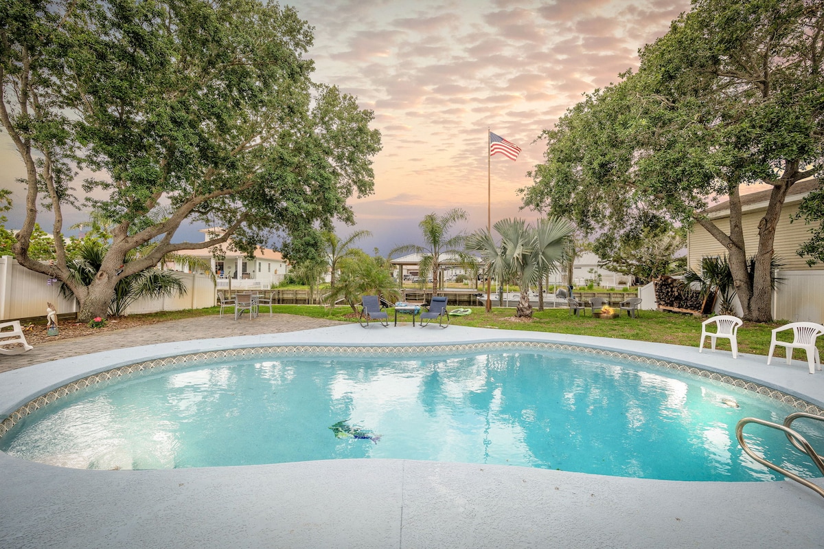 Schönes Haus mit hervorragender Aussicht und Zugang zum Intracoastal. Beobachte Delfine beim Spielen, Yachten beim Vorbeifahren oder genieße den Sonnenuntergang vom Dock aus. Wenn du abenteuerlustig bist, spring auf ein Kajak oder Paddelbrett und erkunde die malerischen Inseln in der Nähe. Wenn das Meer ruft, unternimm eine 2-minütige Fahrt mit dem mitgelieferten 6-Sitzer-Golfwagen (muss Verzichtserklärung unterschreiben) und fahre direkt zum Crescent Beach. Schnapp dir ein Surf- oder Boogie-Board für zusätzliche Spannung!