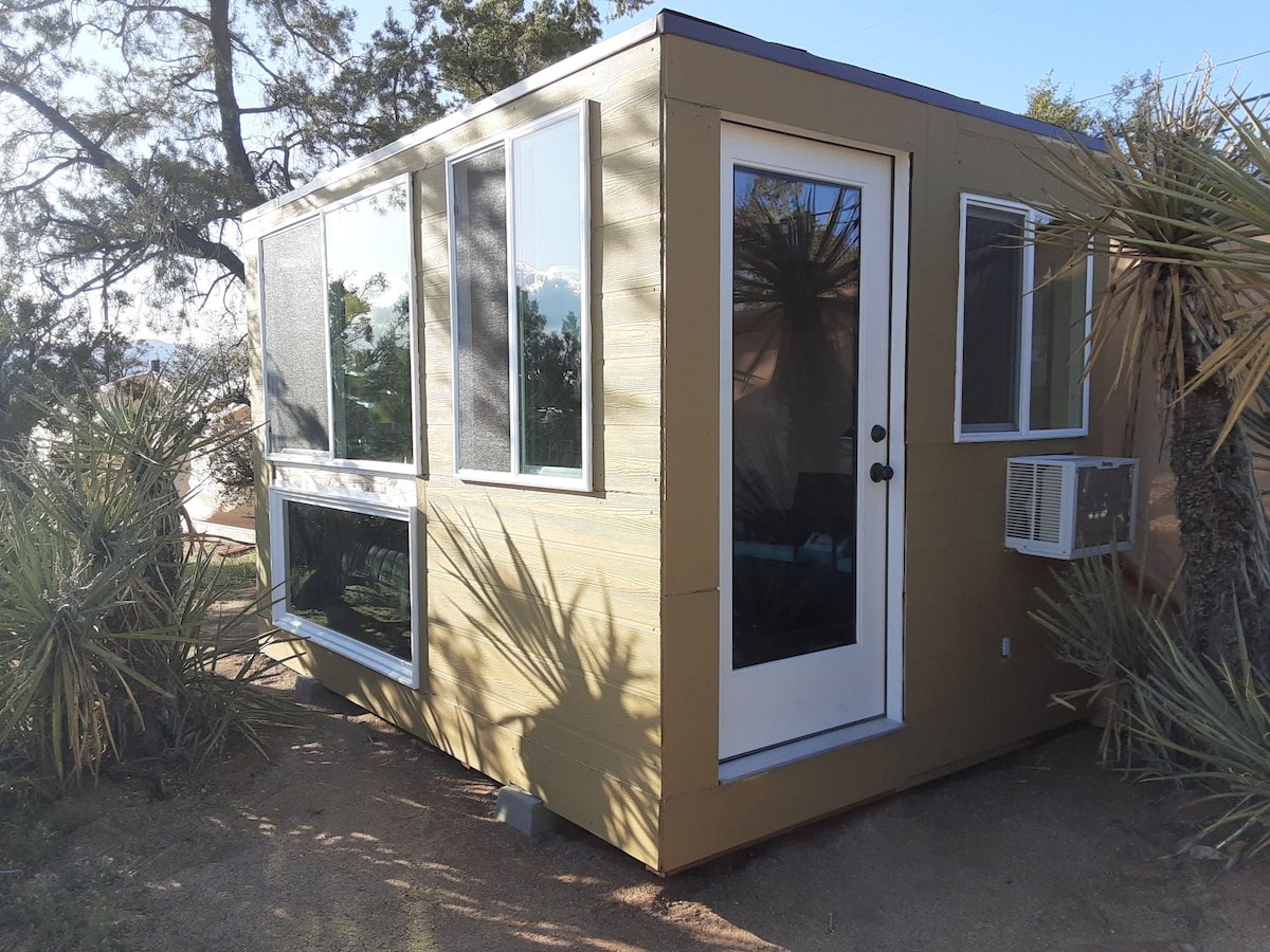 Das Rambler liegt versteckt inmitten von Felsbrocken in der Hochwüste mit atemberaubendem Blick auf die Hügel und Berge dahinter. Mit 12' hohen Decken und durchdachtem Layout bietet dieses winzige Haus 2 Schlafbereiche (Queen/Twin), offenes Wohnkonzept + Küche, Badezimmer mit Komposttoilette und eine 10' Theke, die perfekt positioniert ist, um die friedliche Landschaft zu genießen. Dies ist gepaart mit einer geräumigen Terrasse, einem Grill und einer Sauna. Tritt weg. Verbinde dich wieder. Entdecke eine andere Art, Dinge zu tun. Willkommen im The Rambler.