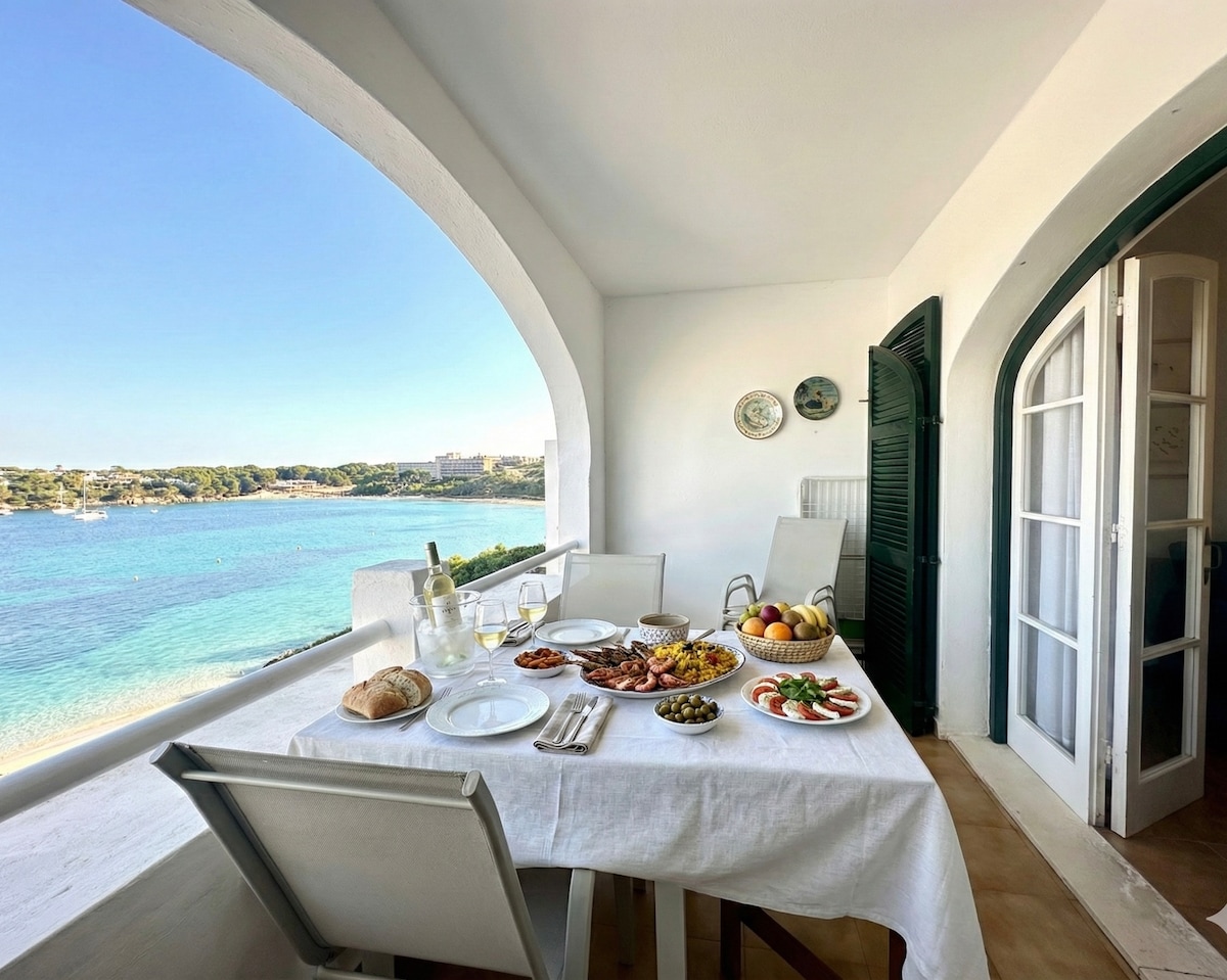 Von der Terrasse aus können Sie die typischen weißen menorquinischen Häuschen der Playas de Fornells sehen, die vom Meer und im Hintergrund vom Kap Cavallería und seinem beeindruckenden Leuchtturm eingerahmt werden. Ein idyllischer Ort, an dem Sie einen spektakulären Panoramablick auf das Meer genießen können; ein wahres Gedicht für die Augen, das besonders während des Sonnenuntergangs einzigartig wird. Die Wohnung befindet sich nur 5-10 Gehminuten vom Strand Cala Tirant entfernt.