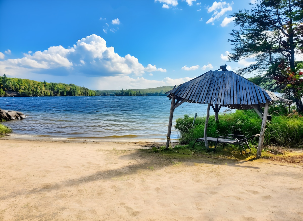 Nur wenige Schritte vom Ufer entfernt befindet sich diese a-frame Hütte in einer privaten Bucht am malerischen Adlersee in den Almaguin Highlands. Der geschätzte Raum unserer Familie steht Familien oder Paaren (maximal 4 Erwachsene) zur Verfügung, um sich auszuruhen und zu verjüngen. Es gibt ein Queensize-Bett in einem Schlafzimmer und ein Etagenbett im anderen Schlafzimmer. Ein einzigartiges Loft bietet jedoch den besten Blick auf den morgendlichen Sonnenaufgang mit einem Queensize-Bett. Ein Tretboot und zwei Kajaks mit Schwimmwesten sind im Mietpreis inbegriffen.