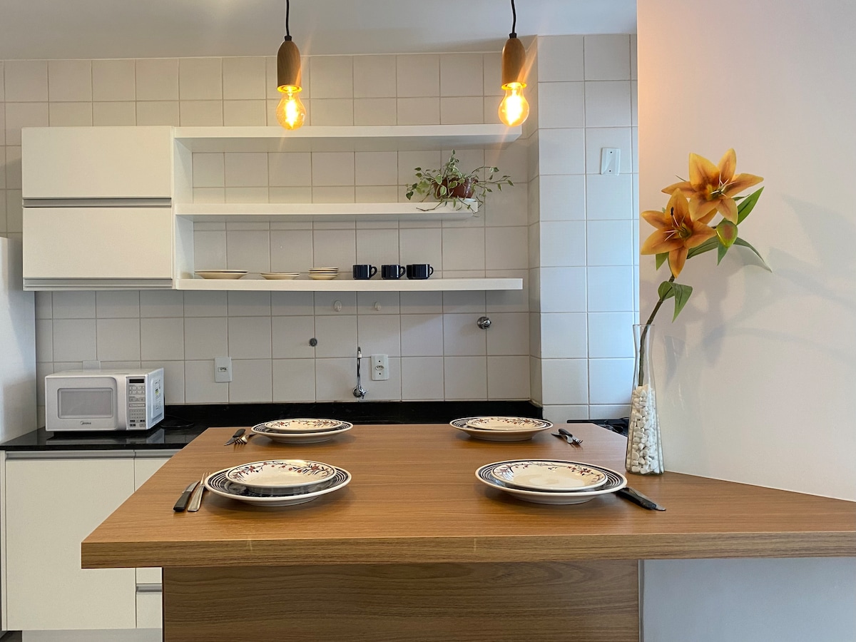 ACHTE DIE CHECK-IN UND CHECK-OUT ZEITEN. Voll ausgestattete Wohnung, Avenida Brasil, 4 Gehminuten vom zentralen Strand vor dem Einkaufszentrum Atlântico, mit geräumigen Zimmern, Klimaanlage. Ideal für 4 Personen (in Betten), Platz für bis zu 6 (2 Matratzen auf dem Boden). VERBOTEN ÜBER 6 PERSONEN. GARAGE FÜR JEEP COMPASS (MAXIMALE GRÖSSE). RESPEKTIERE DIE REGELN DER EIGENTUMSWOHNANLAGE UND DER WOHNUNG (Lärmschutzgesetz). NUR KLEINE HAUSTIERE. Wir bitten ALLE Gäste (Dokumente) um Daten, um das Gebäude zu betreten. Der Zugang erfolgt mit biometrischer Gesichtserkennung.