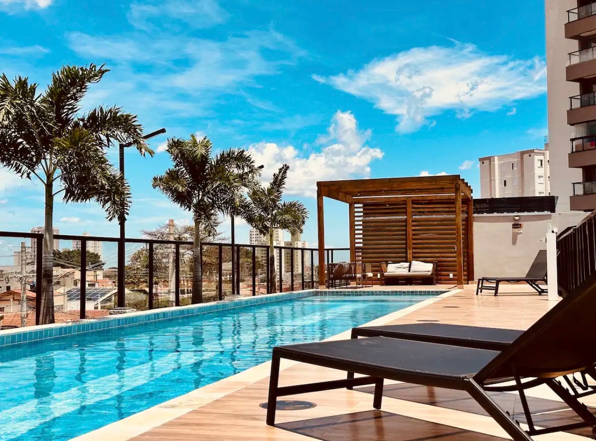 Willkommen zu deinem Kurzurlaub in der Höhe! Dieses gemütliche Studio auf der 16. Etage bietet einen privilegierten Panoramablick auf die Stadt. Mit einer modernen und komfortablen Atmosphäre. In einer strategischen Region gelegen, bist du in der Nähe von allem, an der Hauptstraße von Campinas. Das Gebäude bietet einen 24-Stunden-Concierge. Ideal für Paare, Geschäftsreisende oder alle, die ein einmaliges Erlebnis in der Stadt suchen. Buche jetzt und genieße diese fantastische Aussicht! Diese Unterkunft wird von @kitihaus verwaltet