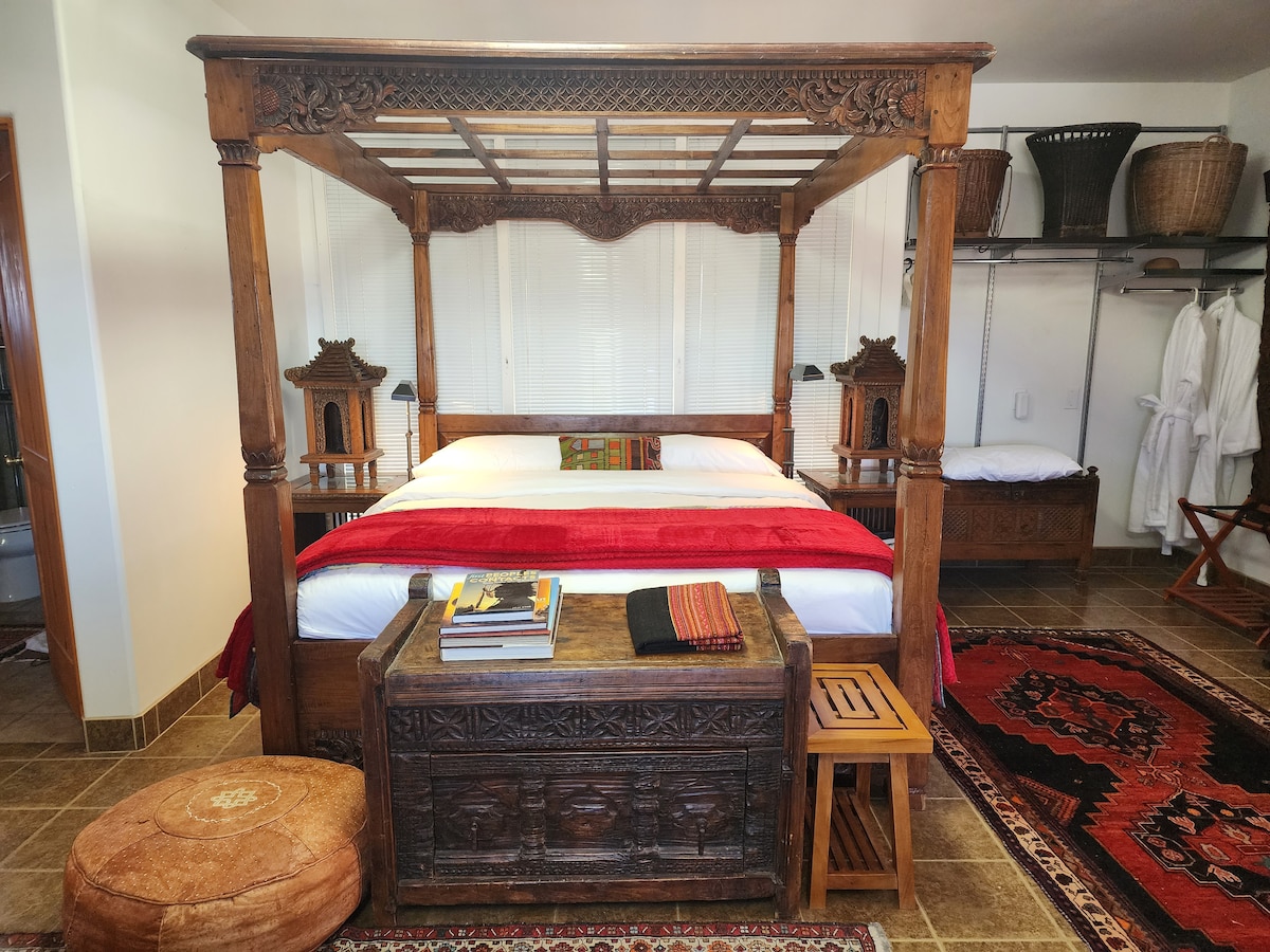 Wrap yourself in luxury at the studio/gallery master suite. We are located 15 minutes from downtown but in the private Hondo hills of Santa Fe, New Mexico. We are 16 miles from Ski Santa Fe. Expect miraculous sunsets over Sandia peak every night, the occasional coyote howl, and the endless stars of the high desert sky. The Master suite has been decorated with incredible attention and detail. A private entrance, and no access to the rest of the house, your suite is completely secluded.