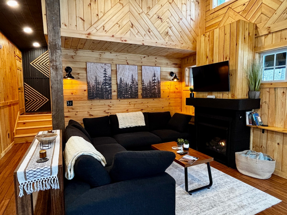Tauche ein in unseren Wald und ruhigen Teich. Die ruhige 40 Hektar große Gemeinde besteht aus zwei kleinen Hauskabinen + Scheune an einem privaten Teich. Buche eine der einfachen, aber eleganten Hütten/Scheunen für mehr Gäste. Moderner, netzunabhängiger, solarbetriebener Rückzugsort. Zwei solide Glaswände, die dich der Natur näher bringen, während du in unserem einfachen, aber eleganten kleinen Haus mit allen Annehmlichkeiten von zu Hause bleibst. 5 Gehminuten bis zu gemeinsamen Feuerstellen, Kajaks, Teich und saisonalem Picknick-Unterstand. AWD SUV oder LKW erforderlich. Abseits des Stromnetzes, also keine Klimaanlage. Haustiergebühr 89 $.