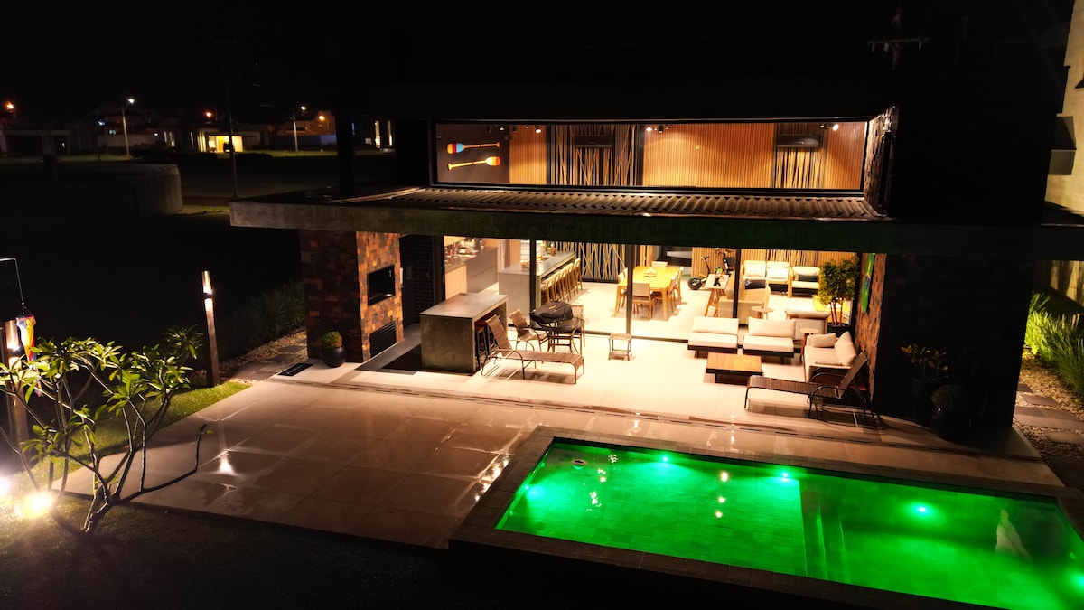 Schönes Haus im Condomínio Murano, komplett eingerichtet und dekoriert, verfügt über 03 Schlafzimmer, davon ein Suite, ein Badezimmer und eine Toilette, einen Freizeitraum, ein Wohnzimmer, ein Esszimmer und einen Gourmetbereich sowie eine Waschküche. Alle Räume sind klimatisiert, Schlafzimmer und Wohnzimmer sind mit Smart-TV ausgestattet, das Wohnzimmer hat einen schönen Kamin. Wir erlauben nur kleine Haustiere (z.B. Deutscher Spitz), begrenzt auf 1. Wir geben diese Regel nicht auf.