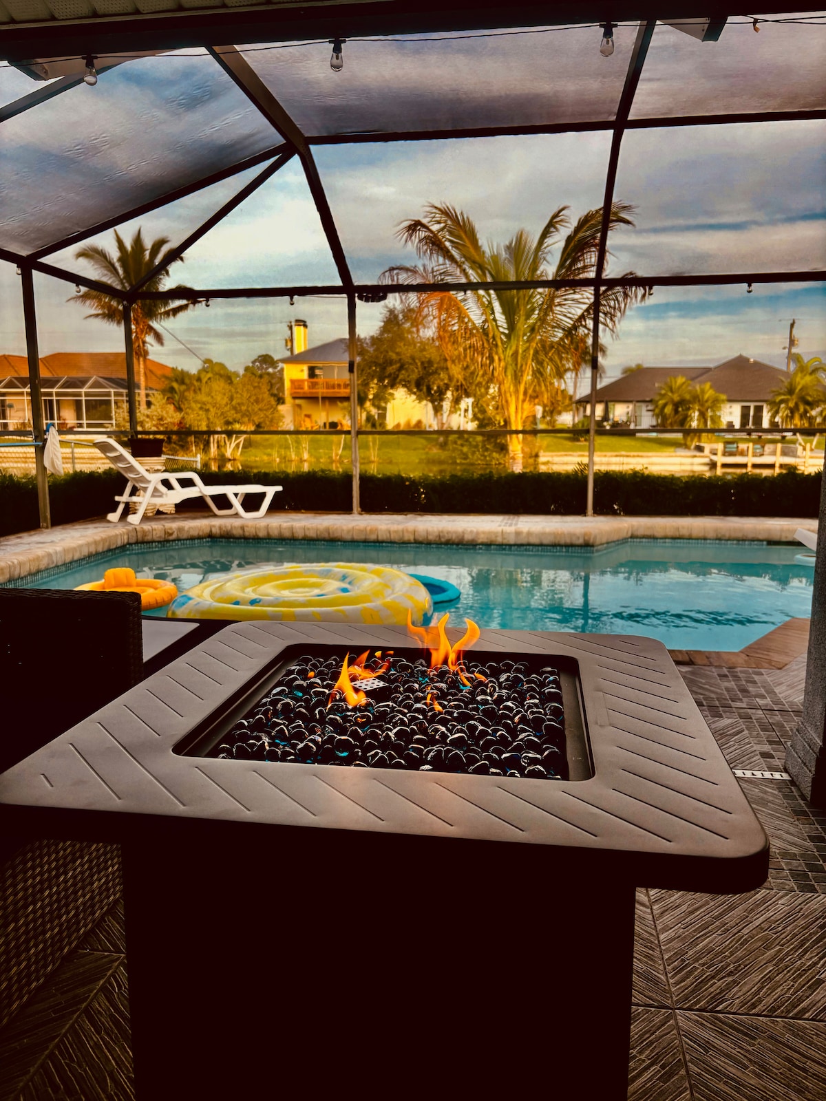 Willkommen im sonnigen Cape Coral! Genieße im Palaco Paradise den ganzen Nachmittag einen ERSTAUNLICHEN BEHEIZTEN POOL mit Sonne auf der Veranda. Grille, entspanne dich oder fahre 30 Minuten zur Fort Myers Beach-Beach-Ausrüstung inklusive! Übernachte mehr als 4 Nächte für KOSTENLOSE Wasserparkpässe. Fische aus dem Hinterhof oder mache eine 5-MINÜTIGE BOOTSFAHRT ZUM FLUSS von deinem eigenen persönlichen Dock aus! Frischer Kaffee ist bereit, wenn du ankommst, und du bist nur 35 Minuten vom Flughafen entfernt. Alles, was du brauchst, nichts, was du nicht tust - nur Sonnenschein, Wasser und pure Entspannung!