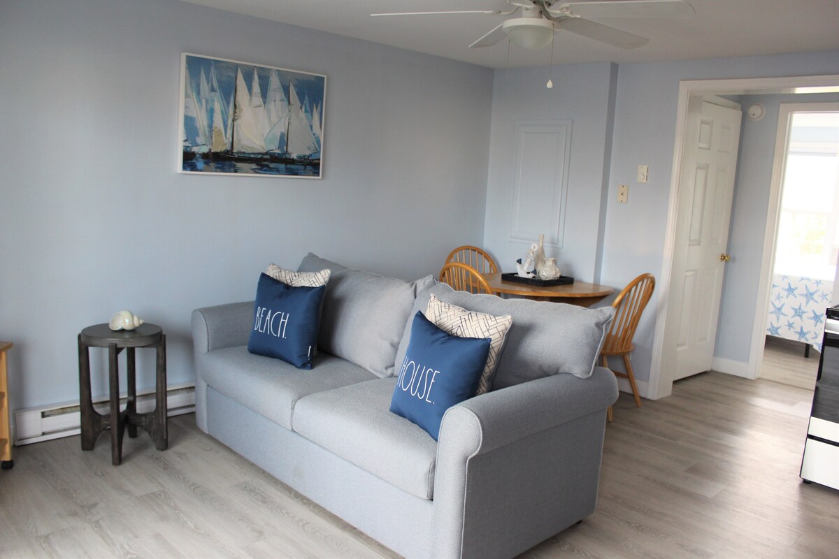 Wenn du mehr Platz und Annehmlichkeiten suchst, als in einem Hotelzimmer zu übernachten, aber trotzdem die Sauberkeit und Professionalität wünschst, die du von einem erwarten würdest, dann wirst du vielleicht gerne hier übernachten. Unsere geräumige 3-Zimmer-Wohnung mit 1.200 Quadratfuß Wohnfläche (ca. 1670) verfügt über sichtbare Balken, breite Kiefernböden, ein komplettes Badezimmer, eine Küchenzeile und ist nur einen kurzen Spaziergang vom Long Sands Beach oder eine kurze Fahrt von York Beach, York Harbor oder York Village entfernt.