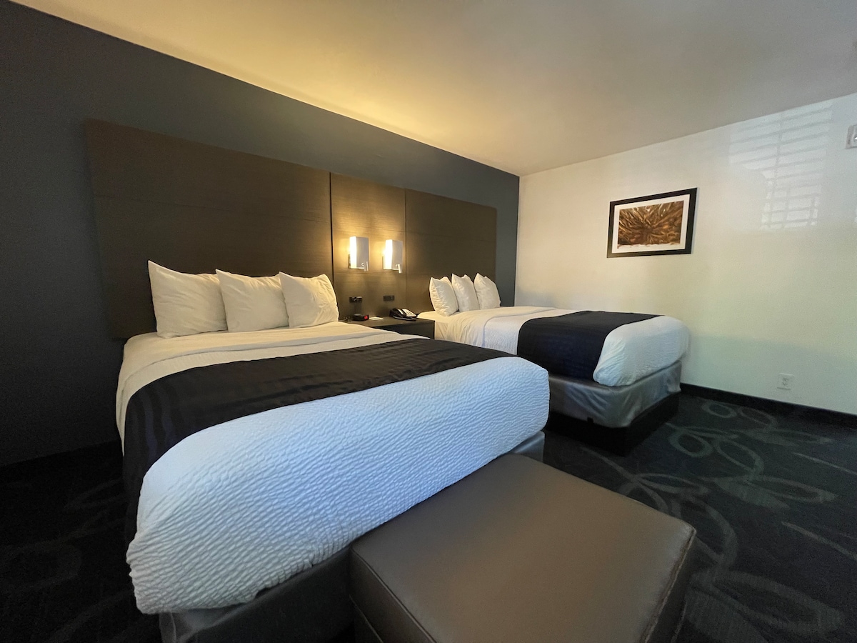 Unser Deluxe-Zimmer mit Queensize-Bett ist mit einem Queensize-Bett mit weicher Bettwäsche ausgestattet, was es perfekt für einen Geschäftsreisenden oder ein Paar macht. Dieser Zimmertyp verfügt über Kaffee/Tee auf dem Zimmer, Kabel-TV mit HBO, WLAN, Heizung, Klimaanlage, Mikrowelle, Kühlschrank und mehr. Verbringen Sie eine erholsame Nachtruhe in unseren neuen High-End-Betten oder entspannen Sie sich und sehen Sie fern mit unseren 50-Zoll-HD-Smart-TVs.