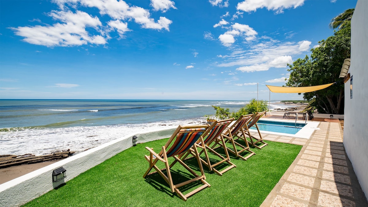 🚨RARE FIND🚨 🥶 AC IN ALL BEDROOMS 😋Cooking Service (Included in pricing) 🚫NO EXCESSIVE ALCOHOL 🚫NO PARTIES PRICING INCLUDES: - Cooking Utensils 🍴 - Pool 🏊 - Bed Linen, Pillows, Sheets, etc Max 15 guests Up to 5 extra guests 15-20beds Welcome to Puesta del Sol – a paradise of tranquility and beauty by the Pacific Ocean. Our beachfront property offers the perfect getaway - relax, enjoy the sea, and experience the comfort of a home away from home. Located just 20 minutes from Diriamba.