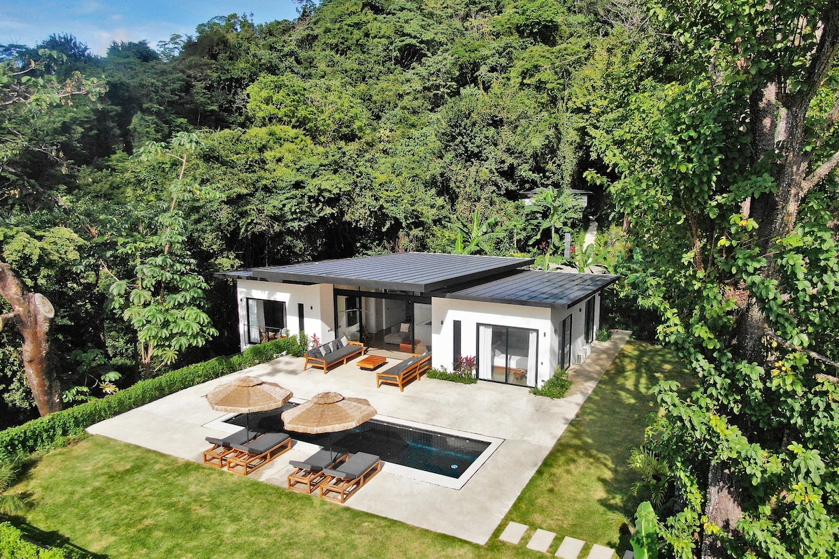 Moderne und nachhaltig konstruierte Villen mit fantastischem Ausblick auf Hügellandschaft und Natur. Umgeben von unvergleichlicher Fauna und Flora, friedlich die grünen Täler Costa Rica´s überblickend. Wir lieben die Natur und ihre Bewohner! Alle unsere Villas sind gebaut und ausschließlich betrieben mit Sonnenenergie durch die eigene Photovoltaik Anlage. Zur Bewässerung des an Permakultur orientierten Garten wird gesammeltes Regenwasser genutzt. Das ist was wir unter "Pura Vida" verstehen!