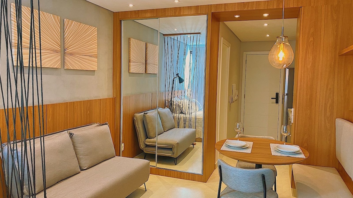 Moderno e aconchegante, este espaço novíssimo em São Lourenço foi criado para quem busca conforto, estilo e praticidade. Com design industrial elegante, pé-direito alto e iluminação natural, o loft oferece uma experiência única, perfeita para casais ou viajantes que valorizam bom gosto e tranquilidade. Mezanino privativo com cama queen, ar-condicionado, Alexa e mesa de trabalho. Experiência completa em São Lourenço, com conforto e estilo. Localização excelente.