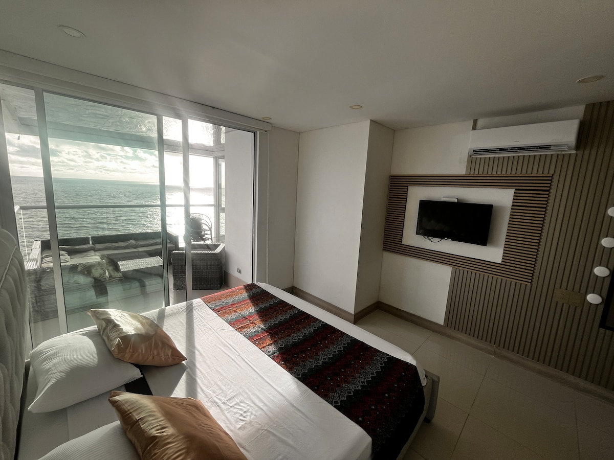 Diese Wohnung ist perfekt für Paare, die eine exklusive Unterkunft suchen, in der alles in Reichweite ist. Es ist auch für ältere Gäste geeignet. Das Gebäude ist ein Wohnturm über einem Einkaufszentrum, das alles bietet — Supermärkte, Restaurants und Geschäfte. Die Wohnung selbst hat einen eleganten Stil, der bis ins kleinste Detail durchdacht ist. Es ist mit von Cartagena inspirierter Kunst gefüllt und bietet eine spektakuläre Aussicht.