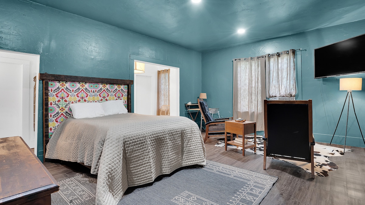 Eklektisches Vintage-Ferienhaus in einer ruhigen Gegend. Du hast Zugang zum gesamten Haus und Hinterhof. Zwei vollwertige Betten in geschlossenen Schlafzimmern sowie ein Futon-Sofa bieten einer Familie bequem Platz zum Schlafen. Du könntest eine Luftmatratze mitbringen, um im geräumigen Wohnbereich mehr zu schlafen. Es gibt eine gemeinsame Einfahrt, die zum Haus und zur Garage führt, sodass du nicht auf der Straße parken musst. Tolles Ferienhaus, in der Nähe von Downtown Ardmore, Hardy Murphy Coliseum, Lake Murray, Turner Falls und anderen Sehenswürdigkeiten!