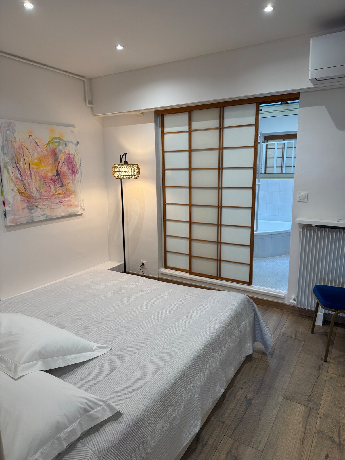 Hübsches T2 von 25 m2 im 1. Stock ( ohne Aufzug ) mit separatem Schlafbereich, sehr gut optimierter Raum. Renoviert von Juni bis August 2019. Charaktervolle Deko mit originalen Bodenplatten, Zementfliesen im Eingang des Gebäudes, marokkanische Fliesen im Badezimmer. Ideale Lage, historisches Stadtzentrum mit Blick auf das Café de l 'Horloge, das 7/7 geöffnet ist. Qualitativ hochwertige Betten, mediterrane Materialien.