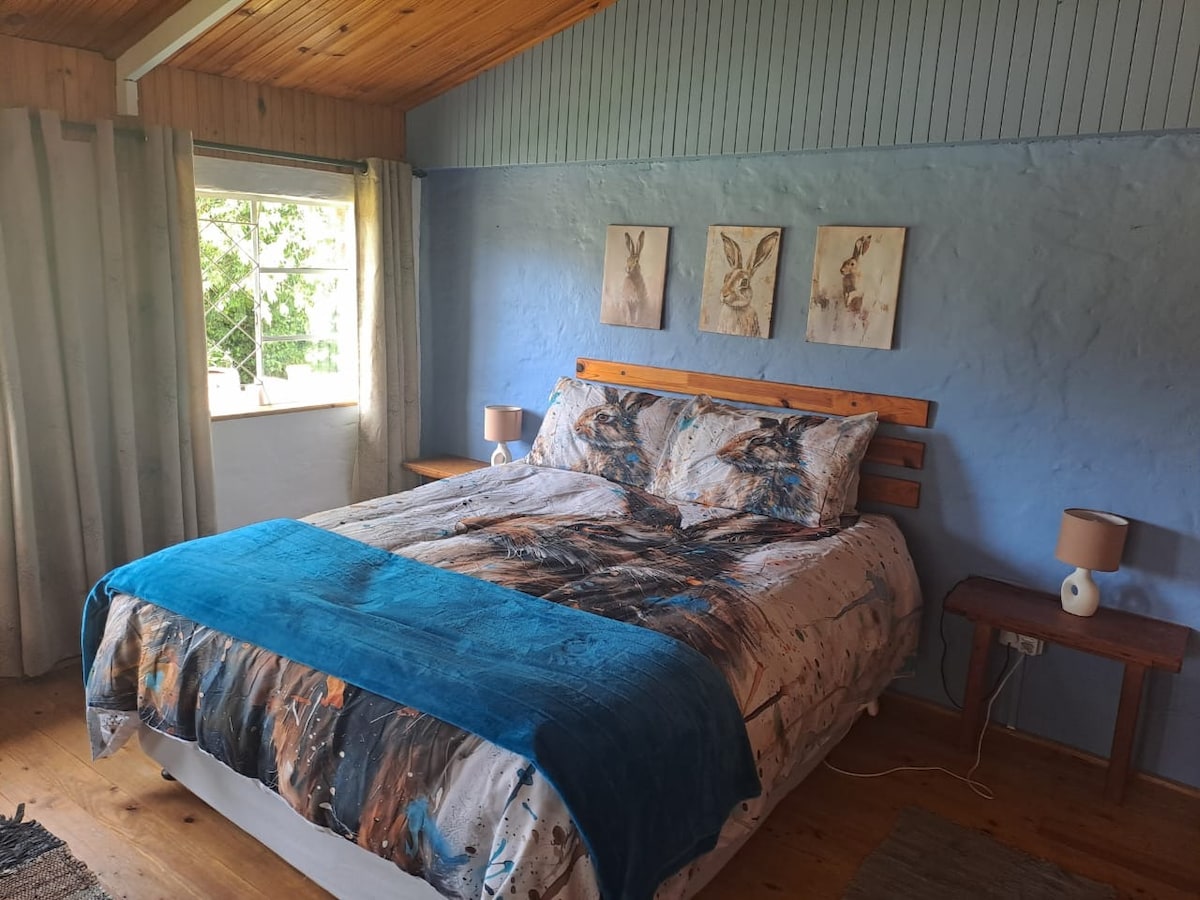 Meine gemütliche und doch geräumige rustikale Öko-Hütte befindet sich in einer wunderschönen natürlichen Umgebung mit spektakulärem Bergblick und ist gut positioniert, um das schöne Morgen- und Nachmittagslicht zu genießen. Beobachte den Vollmondaufgang über den Hogsback-Bergen, genieße schillernde Sonnenuntergänge oder ein großes Lagerfeuer unter dem Sternenhimmel. Es ist ein perfekter Ort für Paare, die ein erholsames und romantisches Wochenende, einen Familien- oder Freundschaftsurlaub oder einen Ort zum Arbeiten suchen (der WLAN-Empfang ist gut und es gibt einen großen Arbeitstisch).