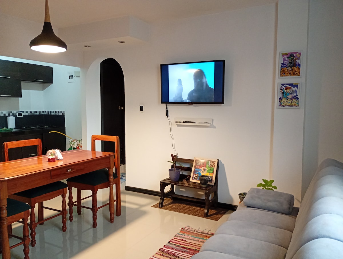 Komplette Wohnung, verfügt über alle Annehmlichkeiten, zwei Aufzüge pro Turm, Parkplatz, voll ausgestattet, sodass du es wie zu Hause genießen kannst. Seine ausgezeichnete Lage ermöglicht es dir, 24 Stunden am Tag dauerhafte Verkehrsmittel, einen Bankbereich, Restaurants, Einkaufszentren, Bars, Erholungszentren, Kirchen, Museen, Supermärkte und einen Korrespondenten im Komplex zu finden. Nur 3 Blocks vom Hauptplatz der Stadt entfernt. Wir sind zuversichtlich, dass dein Aufenthalt angenehm und unvergesslich sein wird!