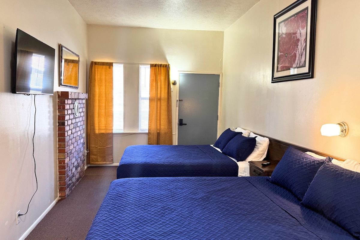 Nach einem anstrengenden Tag auf Reisen kannst du dich stilvoll in unserem großzügig ausgestatteten Zimmer mit zwei Queensize-Betten entspannen. Mit modernem Komfort und erstklassigen Annehmlichkeiten wie zwei luxuriösen Euro-Queen-Queen-Matratzen, einem 50-Zoll-LCD-Fernseher, kostenlosem Highspeed-WLAN, einer Kaffeemaschine im Zimmer, einem Kühlschrank und einer Mikrowelle. Jeden Morgen genießt du unser kostenloses Frühstück.