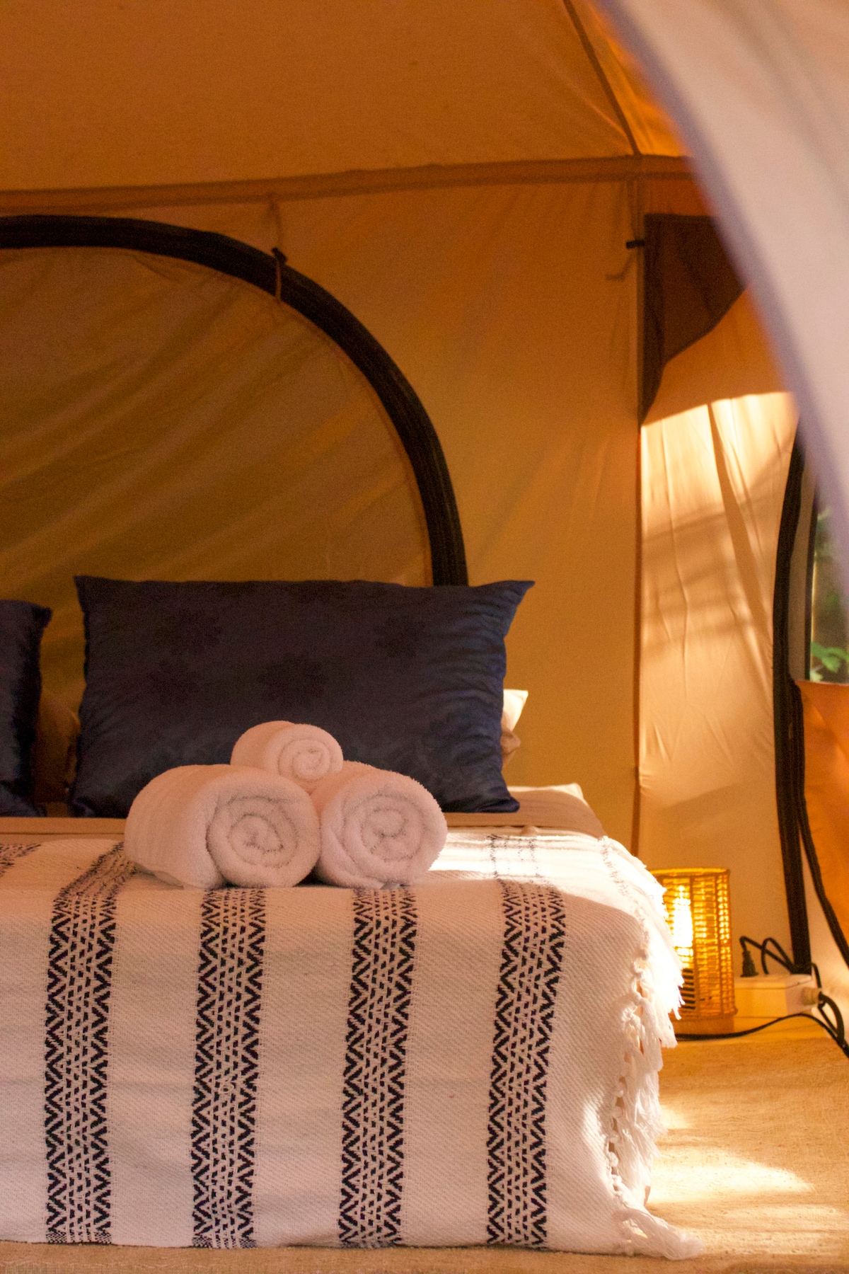 Erlebe Glamping der Extraklasse! Unsere stilvollen Zelte bieten höchsten Komfort mit eigenem Bad, Klimaanlage, einem gemütlichen Queen-Size-Bett und einer Schlafcouch. Zwei traumhafte Strände sind in nur 10 Gehminuten erreichbar. Der großzügige Pool (16 x 8 m) lädt zum Schwimmen ein, während die Terrasse zum Entspannen verführt. Eine voll ausgestattete Küche steht dir zur Verfügung – oder du erkundest die zahlreichen Restaurants in der Umgebung.