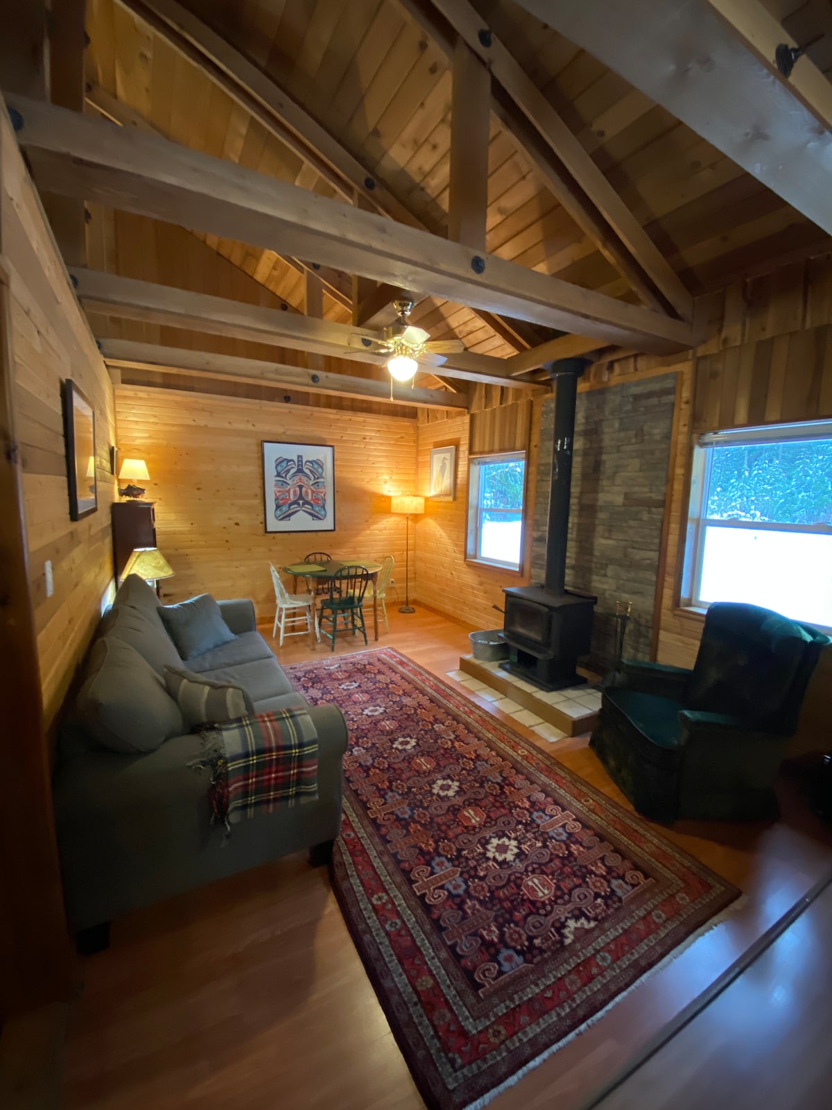 Das Bella Coola Getaway ist das perfekte Basislager für Outdoor-Aktivitäten für deine nächste Reise! Unser gemütlicher Raum bietet Platz für 6 Personen und verfügt über 5 Betten. Wir haben Highspeed-Internetzugang in der gesamten Hütte, eine voll ausgestattete Küche, ein Badezimmer und einen Pavillon im Freien mit einer Feuerstelle und einem Grill. Sie ist sicherlich ein Muss, wenn du Bella Coola besuchst.