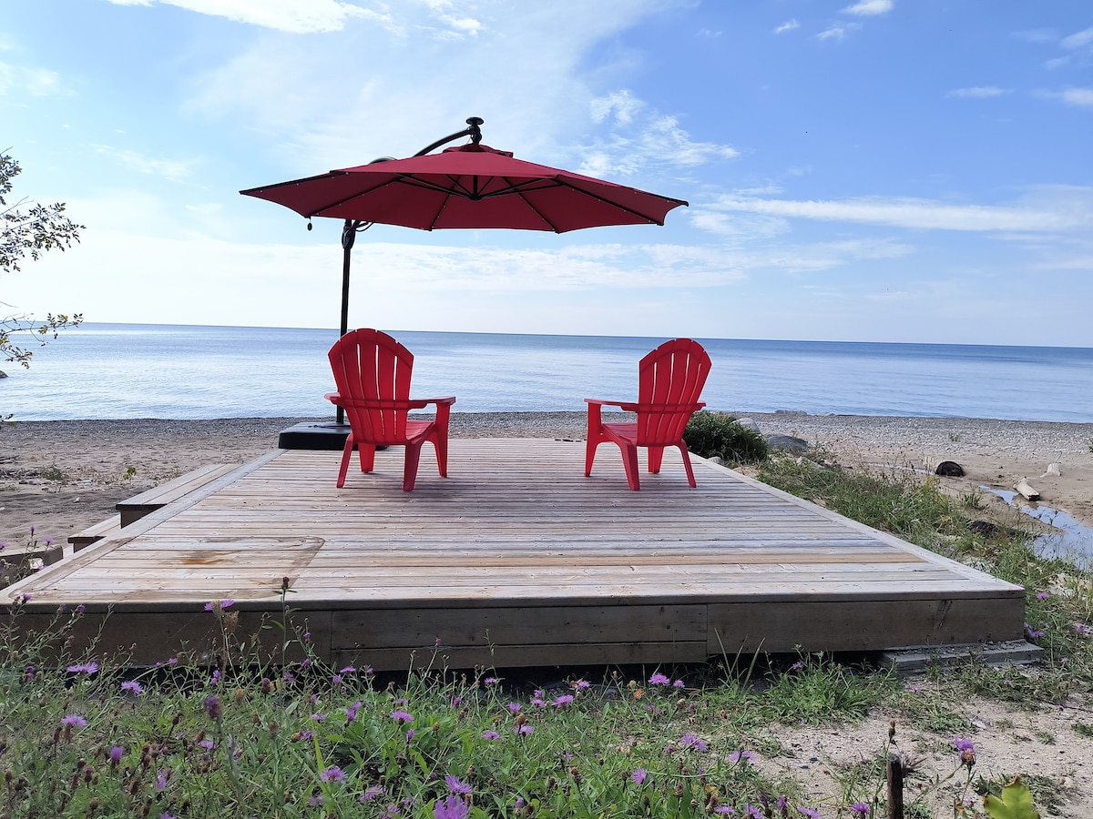 Wir haben einen sehr einzigartigen Kurzurlaub am Ufer des Lake Huron geschaffen. Bei der Kombination von Glamping und Romantik kannst du die mit der Nummer eins bewerteten Sonnenuntergänge des Huron-Sees nutzen. Ob vom privaten Grillen auf der Terrasse, mit einem Lagerfeuer oder zum Entspannen in deinem eigenen Whirlpool - wir bieten die Möglichkeit, abzuschalten und sich wieder zu verbinden. Ein Etagenbett mit 4 Etagenbetten ist inbegriffen, falls du es nutzen möchtest. Bring deine Wanderschuhe oder Schneeschuhe mit und sieh dir die nahegelegenen Wanderwege an! Zugang zum Privatstrand nur wenige Schritte entfernt!