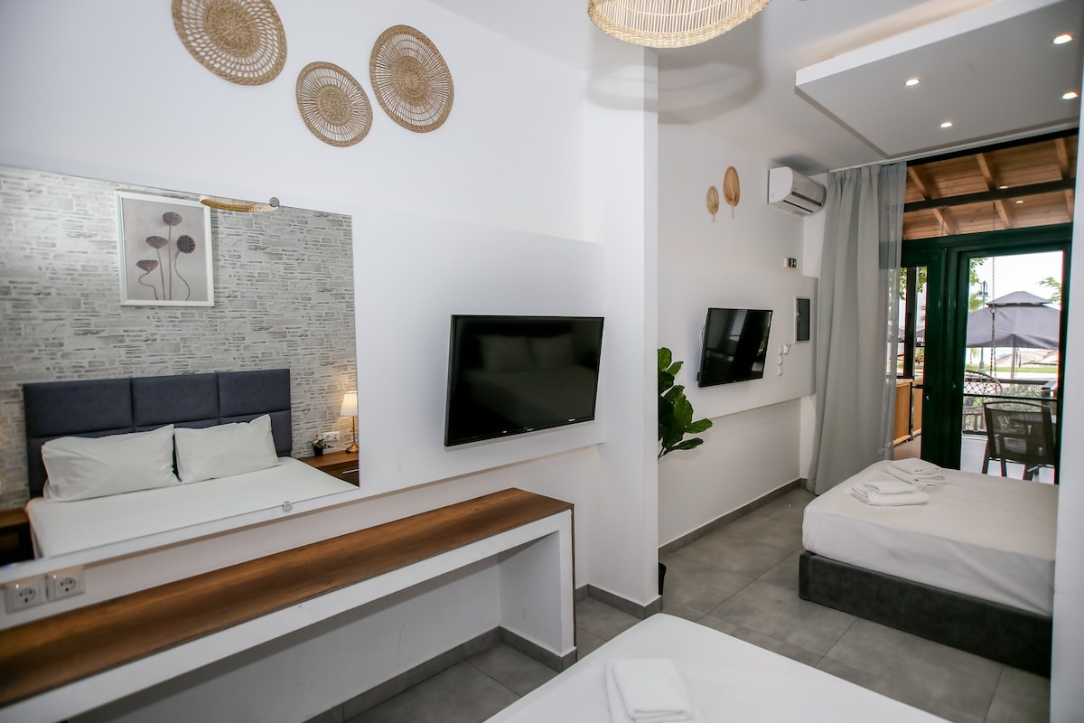 Boho Suites enjoys a location in Pefkohori, only three minute walk from Pefkohori Beach. This unique place has a style all its own. All unites have a fully equipped kitchenette, a private bathroom, and a terrace or balcony with a sea view. Free Wifi is available and private parking can be arranged at an extra charge.