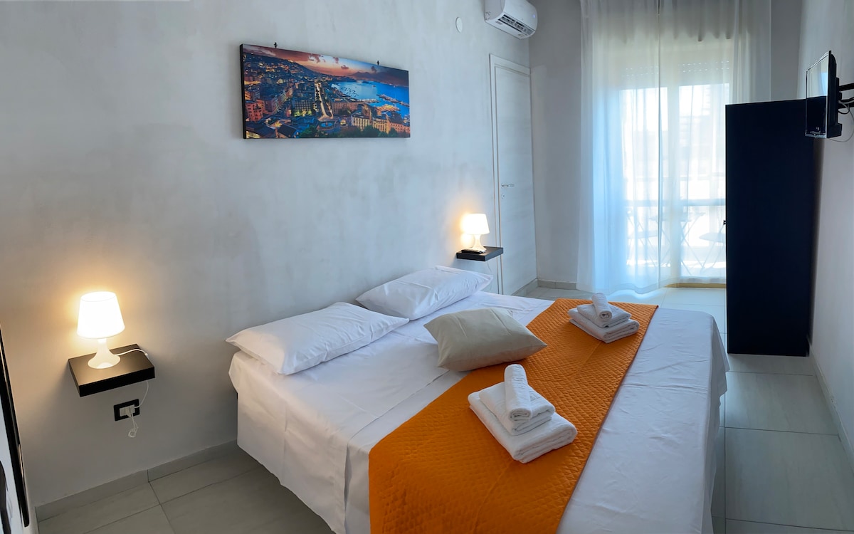 Brandneues und zentrales B&B im pulsierenden Herzen der Stadt, in den Gassen des wahren und authentischen Neapels, nur wenige Gehminuten von der Via Chiaia und der Via Roma, den berühmten Einkaufsstraßen, Cafés und den renommiertesten Konditoreien, in der Nähe von U-Bahn und Seilbahnen. Fein eingerichtet und mit allen Annehmlichkeiten: Jedes Zimmer verfügt über ein eigenes Bad, Heizung und Klimaanlage, Netflix, Minikühlschrank, superschnelles WLAN und einen Arbeitsbereich. Im großen Gemeinschaftsraum finden Sie Kaffee und Tee