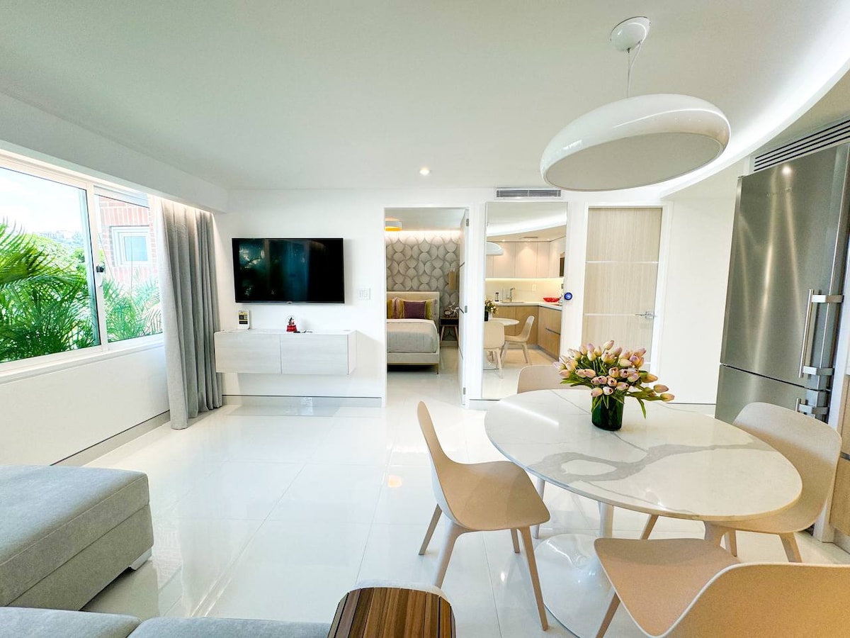Este moderno apartamento cuenta con 1 habitación, 1 baño, 1 puesto de estacionamiento privado y gratuito, internet de alta velocidad, pozo de agua y tanque, TV, aire acondicionado y todos los equipos e implementos de cocina. La ubicación es insuperable, ya que tiene cerca variedad de restaurantes, farmacias, supermercados, centros comerciales. Puede caminar por las calles de la urbanización hasta altas horas de la noche y con total seguridad.