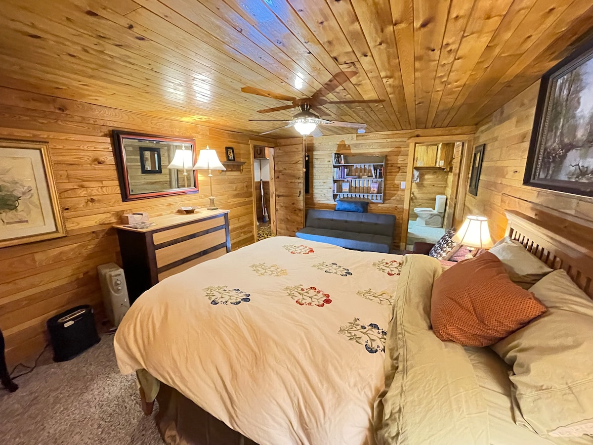 Adams County TRH Lizenz #7333 Willkommen in der Lucky Dog Cabin! Eingebettet in die Bäume liegt unser charmantes Blockhaus 25 Minuten nördlich der Wisconsin Dells und weniger als 10 Minuten vom Castle Rock Lake, dem Wisconsin River und dem Quincy Bluff State Park entfernt. Komm und entspann dich, schalte ab und entfliehe dem Alltag. Genieße die frische Luft, die sternenklaren Nächte und die friedlichen Naturgeräusche. Unser 9 Hektar großes Grundstück bietet einen schönen Weg, der zu herrlichen Sonnenuntergängen durch den Wald führt. Ein wahres Naturparadies!