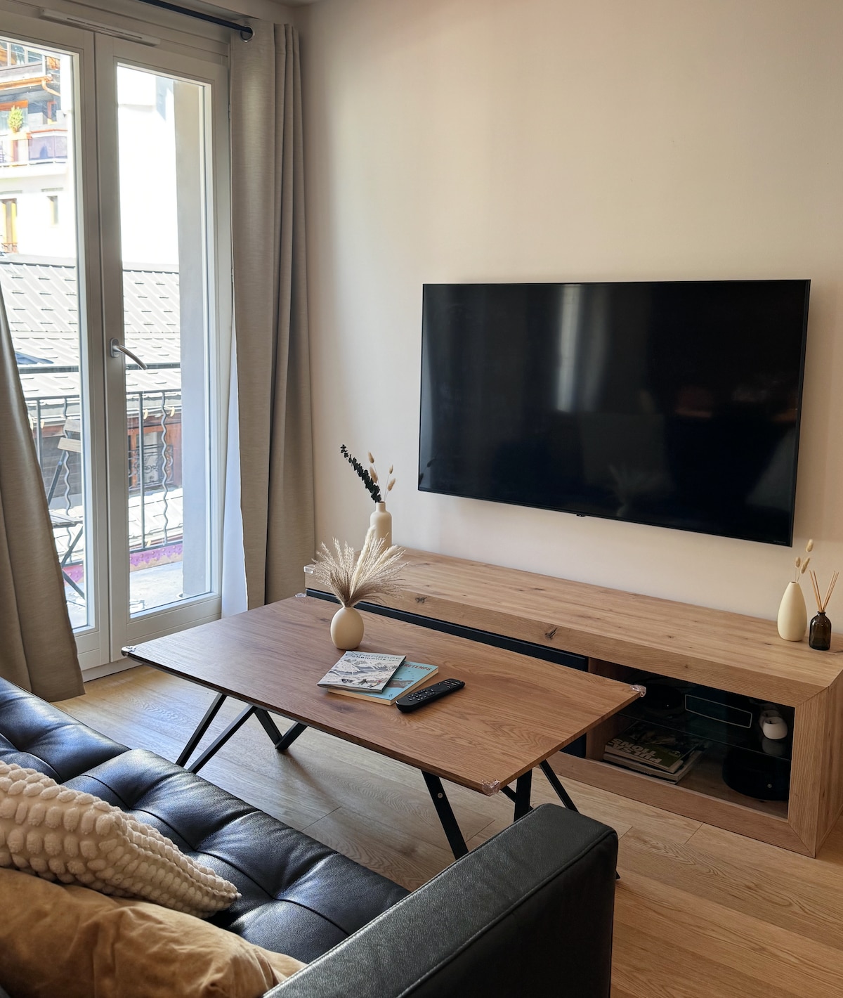Charmante Wohnung im 5. Stock mit Blick auf den Mont Blanc im Herzen des Stadtzentrums. 🛏Schlafzimmer: Sehr geräumig mit Stauraum und Doppelbett 160/200 🛋Wohnzimmer: Großes Ecksofa mit gebogenem Flachbildschirm, Soundbar und Ambientebeleuchtung. 🛀🏻Badezimmer: Große Badewanne und Waschmaschine/Trockner. 🍽Küche: Geschirrspüler, Backofen, Induktionskochfeld, Kaffeemaschine Privater Parkplatz und Aufzug Ideal für Paare oder Einzelpersonen