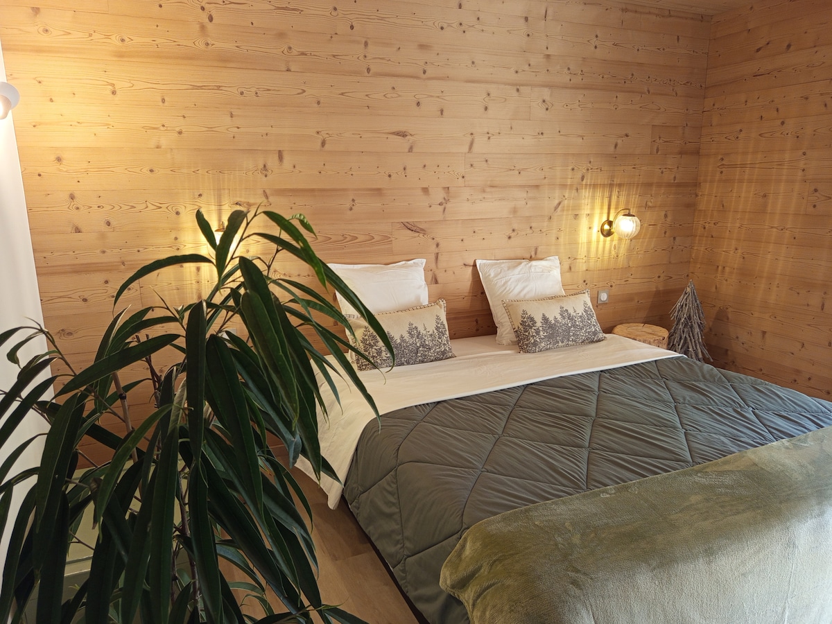 "Côté Lacs" empfängt Sie in der Nähe der Cascades du Hérisson, in einem warmen und gemütlichen Holzhaus im Herzen der Seenregion, die in "La Petite Schottland" umbenannt wurde, um sich mit der Familie oder mit Freunden zu erholen. Inmitten einer Naturlandschaft von 7 Seen im Mittelgebirge haben wir diesen Abrahmen aus Lärche und Tannenbaum gelegt, damit Sie dieses kleine Paradies entdecken können. Wir haben Holzmöbel aus dem Familienboden gehackt und renoviert, um dieses Interieur warm zu machen.