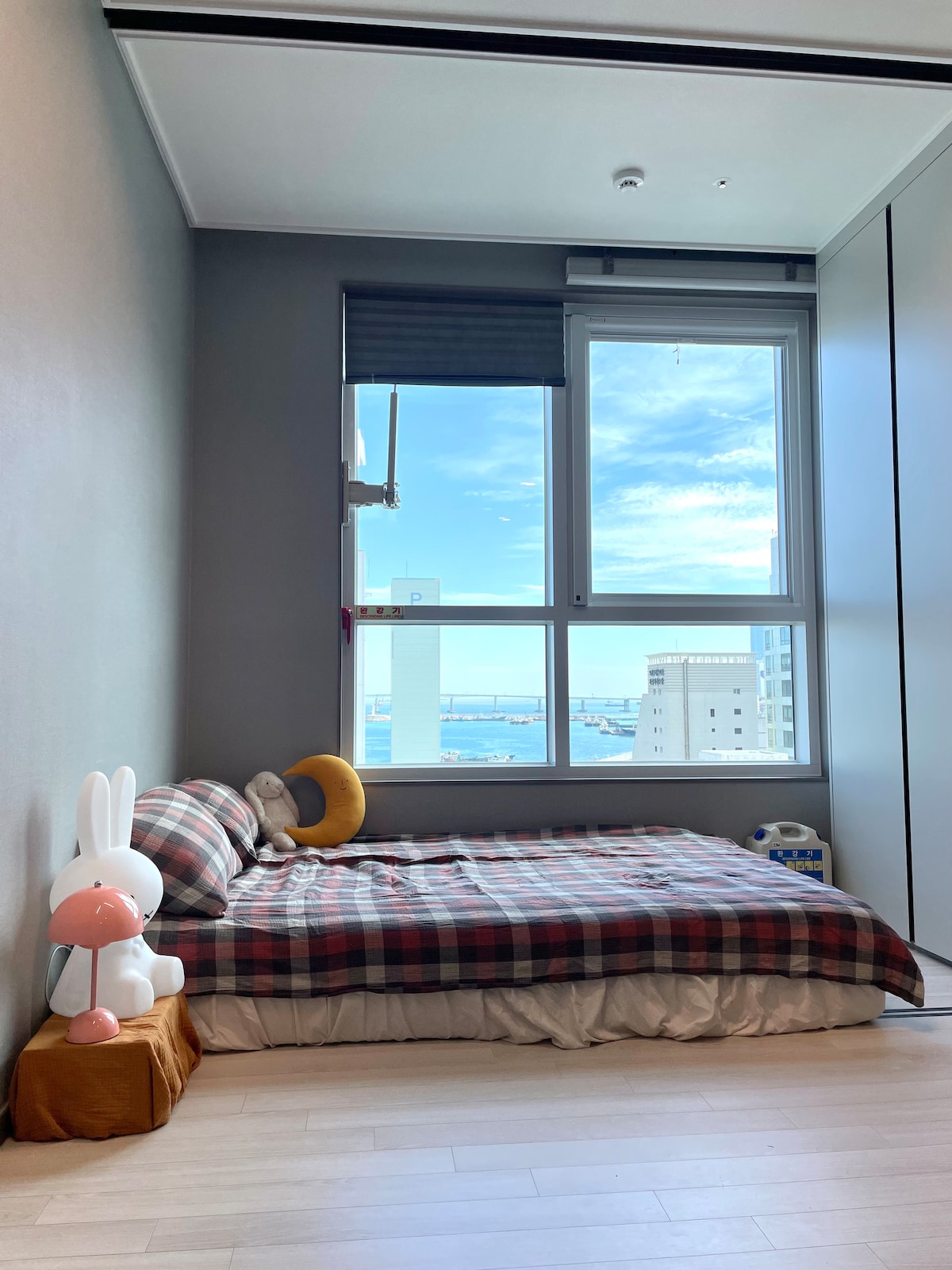 Dieses Zimmer befindet sich direkt vor dem Ausgang 3 des Busbahnhofs Busan Jagalchi. Ein Queensize-Bett ist installiert, und du kannst die schöne Bukhang-Brücke und den Meerblick vom Zimmer aus genießen. Es bietet den besten Ausblick auf das klare Meer am Morgen. Die wichtigsten Touristenattraktionen von Busan wie Beef Square, Kkangtong Market und Jagalchi Market sind zu Fuß erreichbar, sodass es einfach ist, zu reisen. Die Umgebung ist gut ausgestattet mit verschiedenen Annehmlichkeiten wie Lebensmittelgeschäften, Cafés, Restaurants und Apotheken. Kostenloses Highspeed-WLAN und ein 24-Stunden-Sicherheitsdienst helfen dir, sicher zu bleiben, und alle Bereiche sind Nichtraucherbereiche, um eine angenehme Umgebung zu gewährleisten. Ausgestattet mit Kühlschrank, Waschmaschine, Smart-TV usw. ist es für Langzeitaufenthalte geeignet. Bettwäsche und Zimmerreinigung werden für Aufenthalte ab 3 Nächten zur Verfügung gestellt, und wir garantieren eine bequeme und sichere Reise mit kontaktlosem Check-in und Textkommunikation. * Wichtig: Es gibt keinen privaten Parkplatz in diesem Gebäude, also stelle bitte sicher, dass du den privaten Parkplatz (JS-Parkplatz usw.) nutzt, der nur 5 Gehminuten entfernt ist.