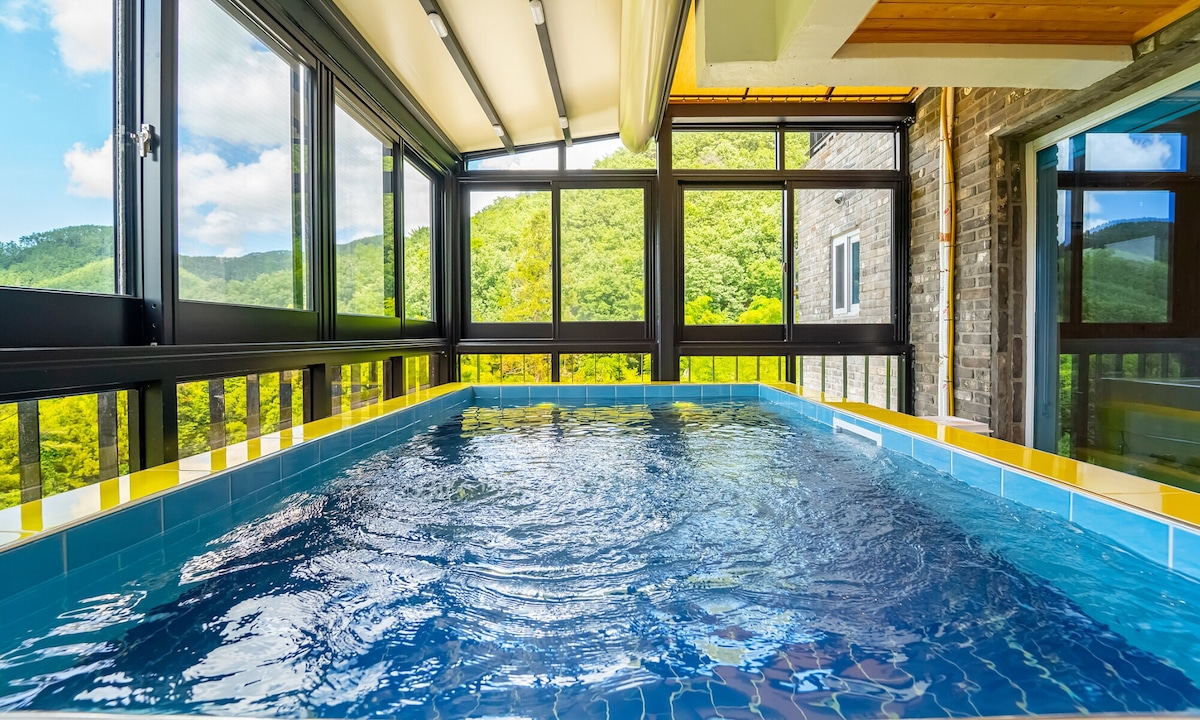 Reserve 'GEOJE RESERVE' Never Reserved Before. Great place to isolate & relax. If you donโt mind being 30 minutes away from everything, come out & see what itโs like to really get away. . Take the entire family and couple-friendly pool villa . All-seasons warm water above-ground pool (10m x 3m) . Signature photo spot of acrylic pool (2m acrylic) . 2 brs with 3 beds (King+Queen+Super Single) . 2 baths (A spacious tile-finished indoor SPA) . Courtyard (Electronic BBQ grill available)
