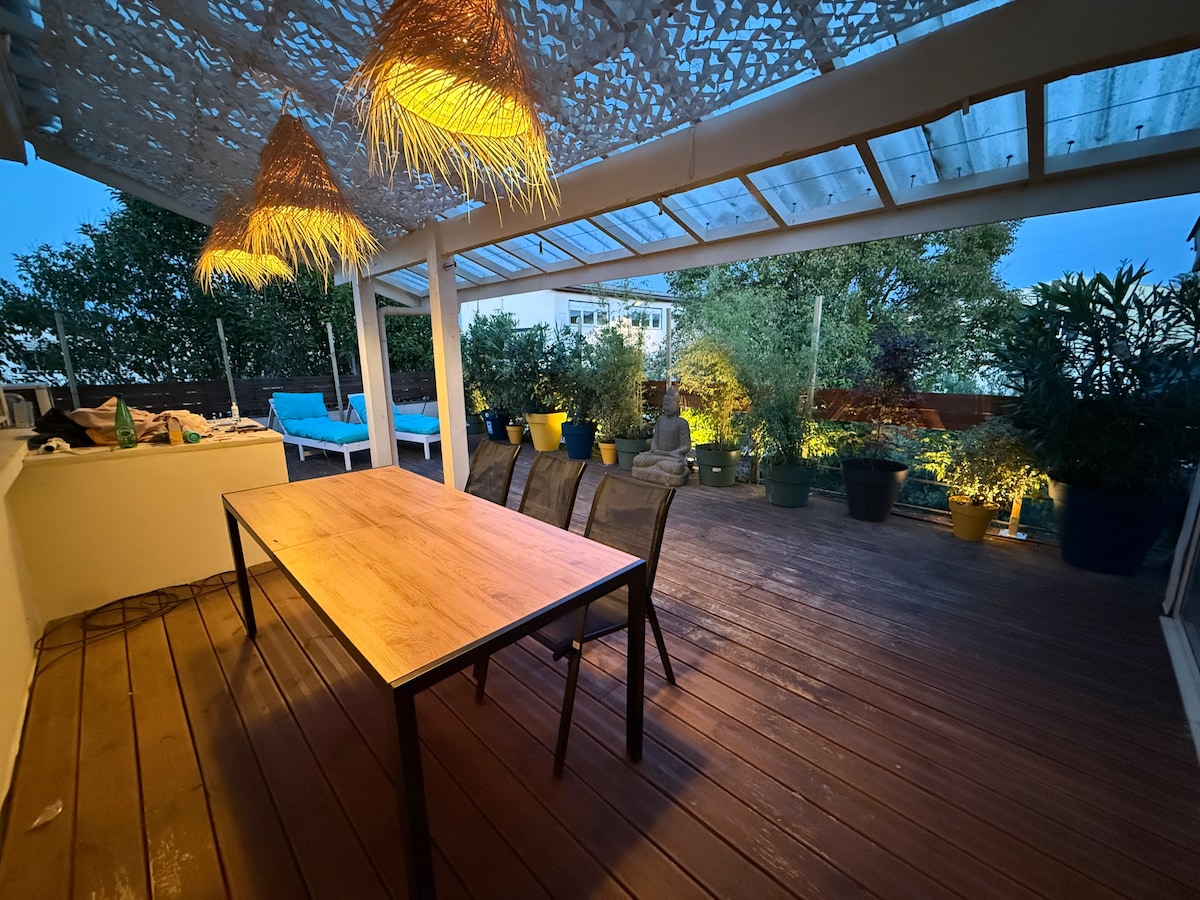 Kokon mit großer Terrasse und sicherem Parkplatz