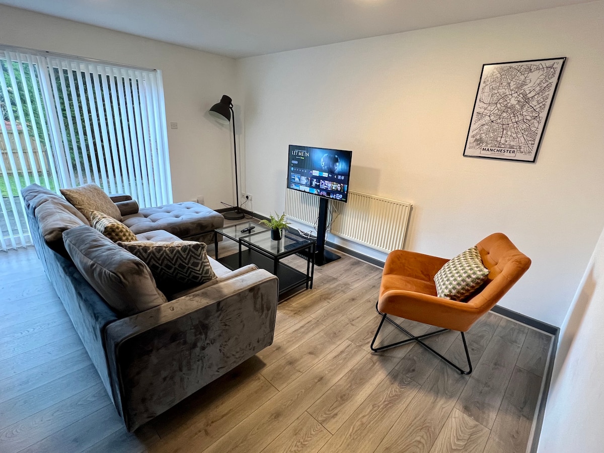 Welcome to Heaton House This unique place has a style all its own. Ultra modern, newly renovated this 2 bedrooms (King Size Master Bedroom) It's cosy & homely feel catering to famierly with children & pets, couples or work stays, it has it all Nice little extras such as tea-coffee shampoo & conditioner come complimentary Situated in a suburban town it’s close to Manchester city centre + some fabulous local amenities Great connection to Manchester Airport 12mins & links to The Etihad & Man United