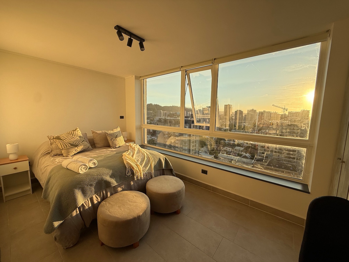 Genieße diese neue Wohnung, voll ausgestattet für zwei Personen, elektronisches Türschloss, zentral und sehr komfortabel, ideal für einen Aufenthalt in Concepción. Nur wenige Schritte von der Universidad de Concepción, Hospital Regional, Tribunales usw. entfernt Das Gebäude verfügt über einen Concierge-Sicherheitsdienst rund um die Uhr, einen geschlossenen TV-Kreis, einen privaten Parkplatz in der Tiefgarage und eine Gebäudewäscherei.