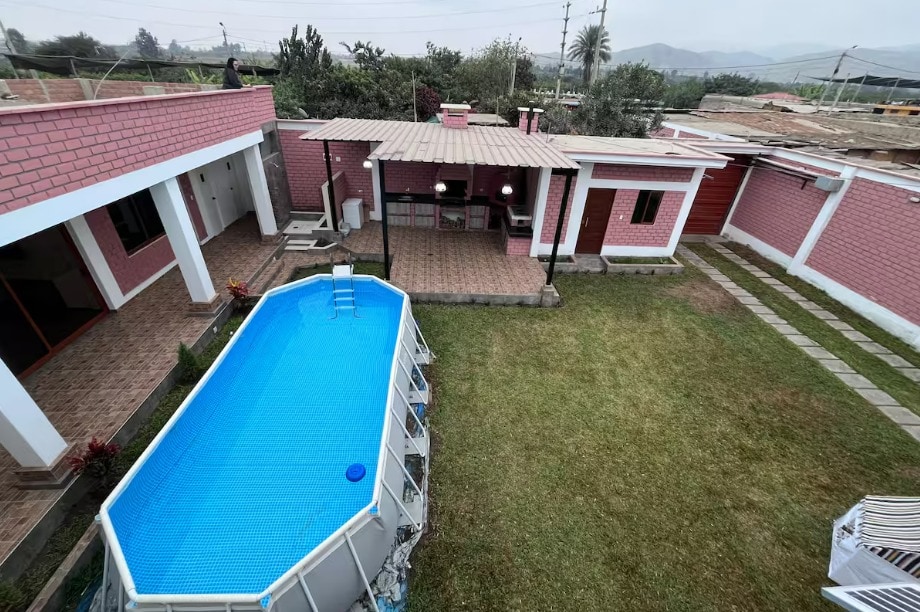 Schönes Haus in der Wohnanlage Chinchyacamac, neue Panamericana-Straße, südlich von km 202,4. Entspanne dich mit der ganzen Familie an diesem ruhigen Ort mit Blick auf das Meer. Komfortable Zimmer, sehr nah am Meer, mit einem schönen Pool für Erwachsene und Kinder, das Haus verfügt über 4 Schlafzimmer. Zwei von ihnen mit kompletten Badezimmern, zwei Grills, einer auf der Terrasse im ersten Stock (Garten) und einer auf der Terrasse im zweiten Stock. Es gibt einen Fernseher im Esszimmer und einen Fernseher im Hauptschlafzimmer. Warmwasser.