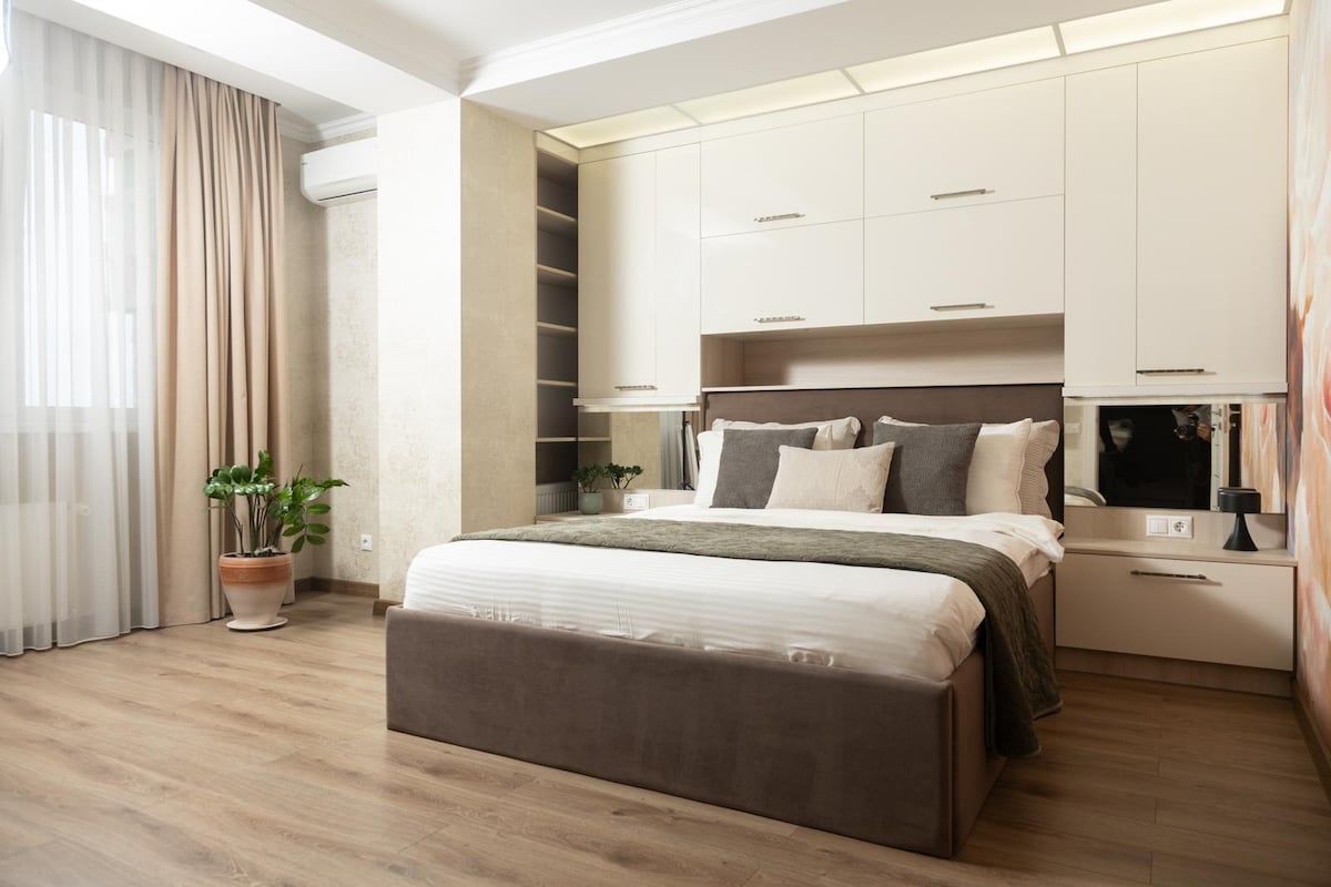 Wunderschöne Designer-Wohnung mit einzigartiger Aussicht. Wir laden Sie ein, Ihren Aufenthalt in unserer 70 m ² großen Designer-Wohnung im 15. Stock zu genießen. Die Fenster bieten eine atemberaubende Aussicht auf die ganze Stadt, die dich jeden Tag begeistern wird. Die Wohnung befindet sich in der prestigeträchtigen Gegend des Rose Valley Park,direkt am Ufer des Sees und des Parks. Die Wohnung ist in stilvollem und gemütlichem Design eingerichtet. Wir bieten einen Service in der Nähe des Hotels an, damit du dich wie zu Hause fühlst, aber mit zusätzlicher Ausstattung.