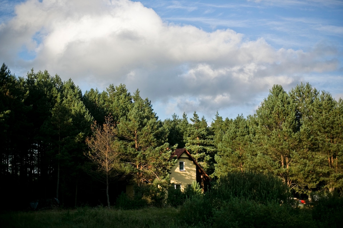 Dom, w którym się zakochacie - prosty, przytulny, ciepły - w cudownej okolicy - na końcu wsi, w sosnowym lesie, tuż przy pięknej rzece i dzikim jeziorze. Doświadczycie tu absolutnej ciszy i dzikości, zregenerujecie się w kontakcie z przyrodą i w powolnym rytmie natury. Rozpalicie ogień w kominku lub na dworze, napijecie kawy na ganku i zjecie posiłek wśród drzew, wykąpiecie się w orzeźwiającej rzece, pójdziecie na długi spacer do lasu, zrobicie spływ kajakowy przepływając tuż obok domu...