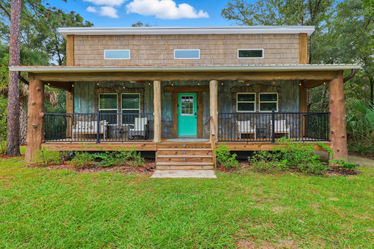 Bist du auf der Suche nach einem entspannten Wochenende? Dieser Ort hat einfach alles! Diese winzige Scheune liegt unter den majestätischen Eichen von Nature Coast und ist so entspannend wie möglich. Wache morgens auf und öffne die Terrassentüren, um die Vögel singen zu hören und den Sonnenaufgang zu beobachten, während du eine heiße Tasse Kaffee in einem Adirondack-Stuhl genießt. Genieße die Abende mit einem Lagerfeuer und koche mit unserer Küchenzeile im Freien. Unser komplett eingezäunter Hof ermöglicht es deinem pelzigen Freund, frei herumzulaufen, während du dich entspannst!