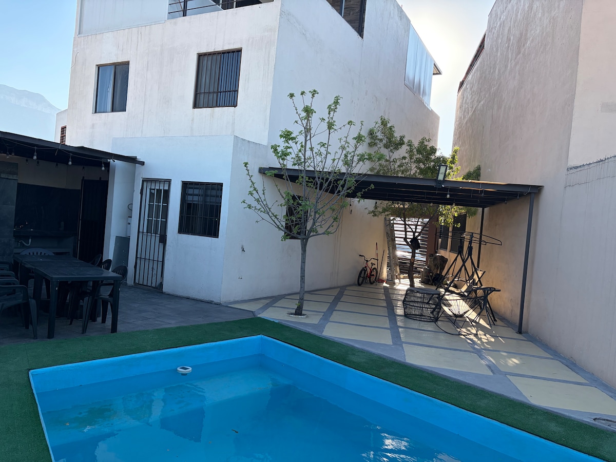 Wir stellen Rechnungen aus. Entfliehe in ein warmes, modernes, neu renoviertes Zuhause im Boutique-Stil. 19 Minuten vom Flughafen und 35 Minuten von der Innenstadt von Monterrey entfernt, in einer privaten Gemeinde mit 24/7 Überwachung, in der Nähe von Industrieparks und Geschäften. Genieße Boutique-Badezimmer, Klimaanlage und Heizung in den Schlafzimmern, 75-Zoll-Mini-LED-Bildschirme mit Bang & Olufsen-Sound im Wohnzimmer und Schlafzimmer. Streaming-Apps, Xbox, Brettspiele und Terrasse mit TV, Grill und Gartenmöbeln. Saint Laurent Steinmöbel. Alles für dich, um ein tolles Erlebnis zu erleben