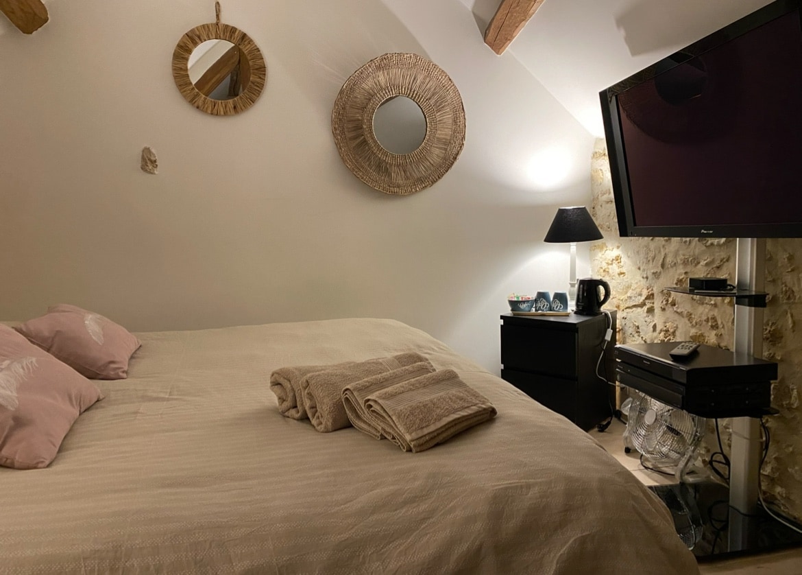 Diese schöne und ruhige Unterkunft empfängt Sie allein und/oder bis zu 4 Personen. Sie verfügt über eine neue und voll ausgestattete Küche (Backofen, Herd, Mikrowelle, Kühlschrank, Kaffeemaschine, Wasserkocher...) Im Obergeschoss befinden sich zwei Schlafzimmer (2 Betten 140 x 200), ein Duschbad, ein separates WC (Bettwäsche und Handtücher werden zur Verfügung gestellt). Möglichkeit, die Natur und den Garten zu genießen.