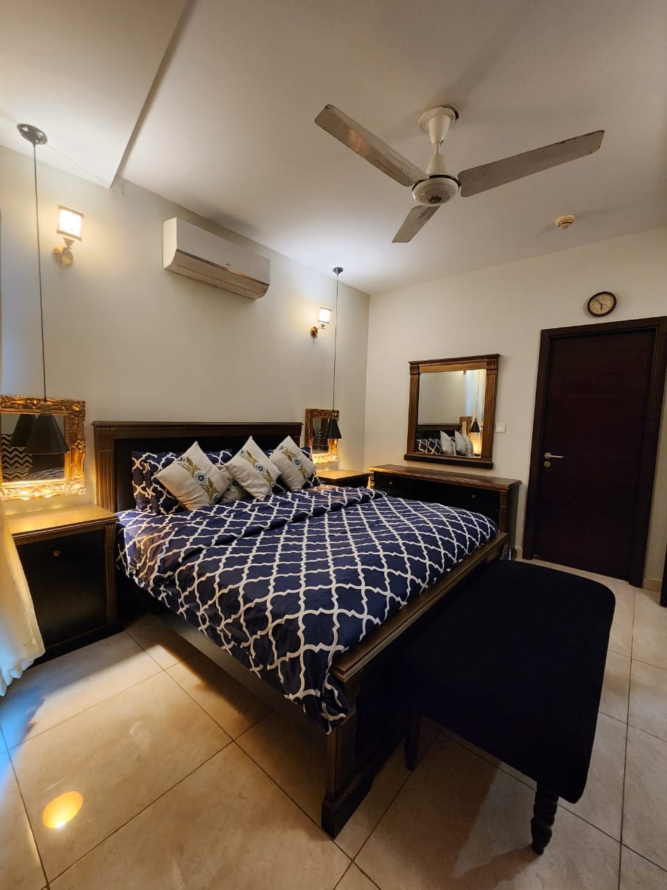 This is my personal lavish & spacious 02 bedrooms 10 marlas house with attached bathroom. It has one king plus size bed in Bedroom No. 1. One queen size bed with one single bed in Bedroom No. 2. Two extra mattresses which can easily accommodate a total of 07 people. This house has a drawing room area, a gym, a sitting area for 10 people, a dining table, and an open kitchen. The whole family can feel the coziness of this peaceful place at the time of their stay. Feel home away from home !!