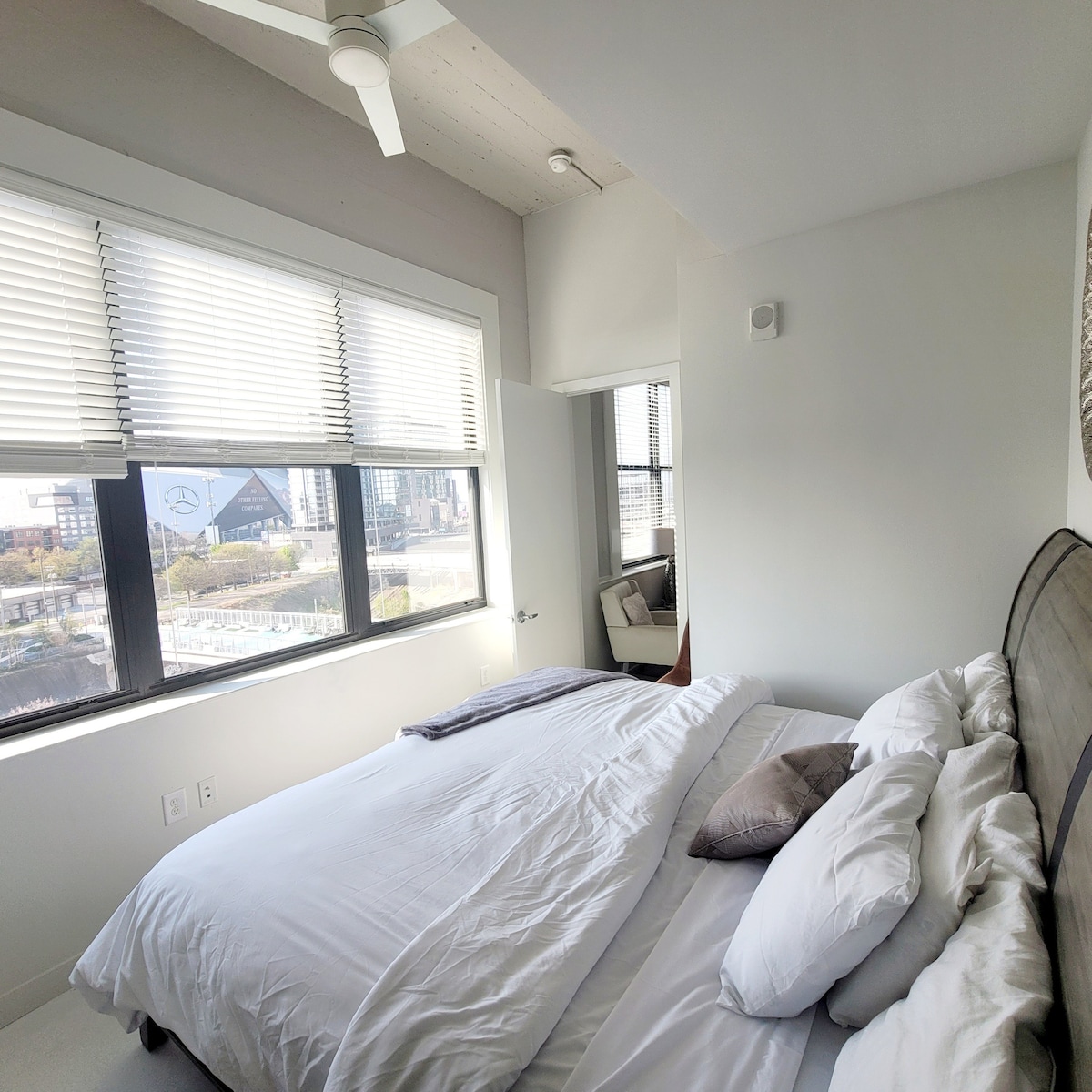 Willkommen in unserer stilvollen Wohnung, nur wenige Minuten vom Truist Park entfernt, der Heimat der Atlanta Braves! Ideal für Sportbegeisterte und Stadtentdecker bietet unser moderner Raum Komfort und Komfort. Genieße geschmackvolle Möbel, eine voll ausgestattete Küche und ein luxuriöses Bett mit reichlich Stauraum. Unsere erstklassige Lage in der Nähe des Truist Parks bietet einfachen Zugang zu Restaurants, Einkaufsmöglichkeiten und Unterhaltungsmöglichkeiten im Battery Atlanta. Buche jetzt für einen stilvollen, komfortablen Aufenthalt, perfekt für Braves-Spiele, Geschäftsreisende oder Urlauber!
