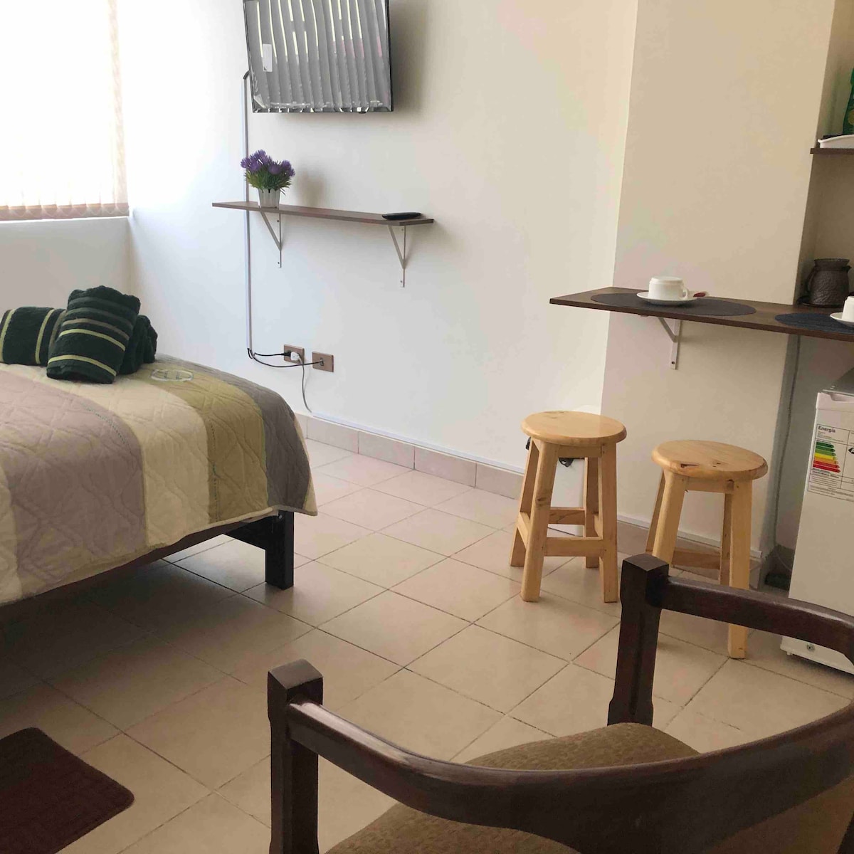 Genieße einen guten Aufenthalt in einer schönen Studiowohnung im besten Ort von Cochabamba (El Prado). In der Nähe von Restaurants, Cafés, Banken, Einkaufsmöglichkeiten usw. Einfacher Zugang zu Verkehrsmitteln.