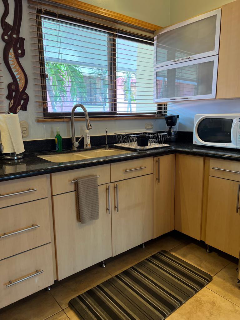Bienvenido! Willkommen im The Casa Aire Complex. Casa Aire Complex ist eine umweltfreundliche Entwicklung mit fünf einzigartigen Häusern. Die Wohnung verfügt über 1 Schlafzimmer, 1 Badezimmer und ein Schlafsofa im Wohnzimmer. Schlafplätze für 3 Personen. Alle Wohnstile sind für Energieeffizienz isoliert und komplett möbliert. Guanacaste und andere lokale Hölzer werden in der Innenarchitektur verwendet. Die Unterkunft verfügt über ein Gelände und Sicherheitspersonal vor Ort. Der allgemeine Gemeinschaftsbereich wird zum Parken unter den anderen Einheiten geteilt.